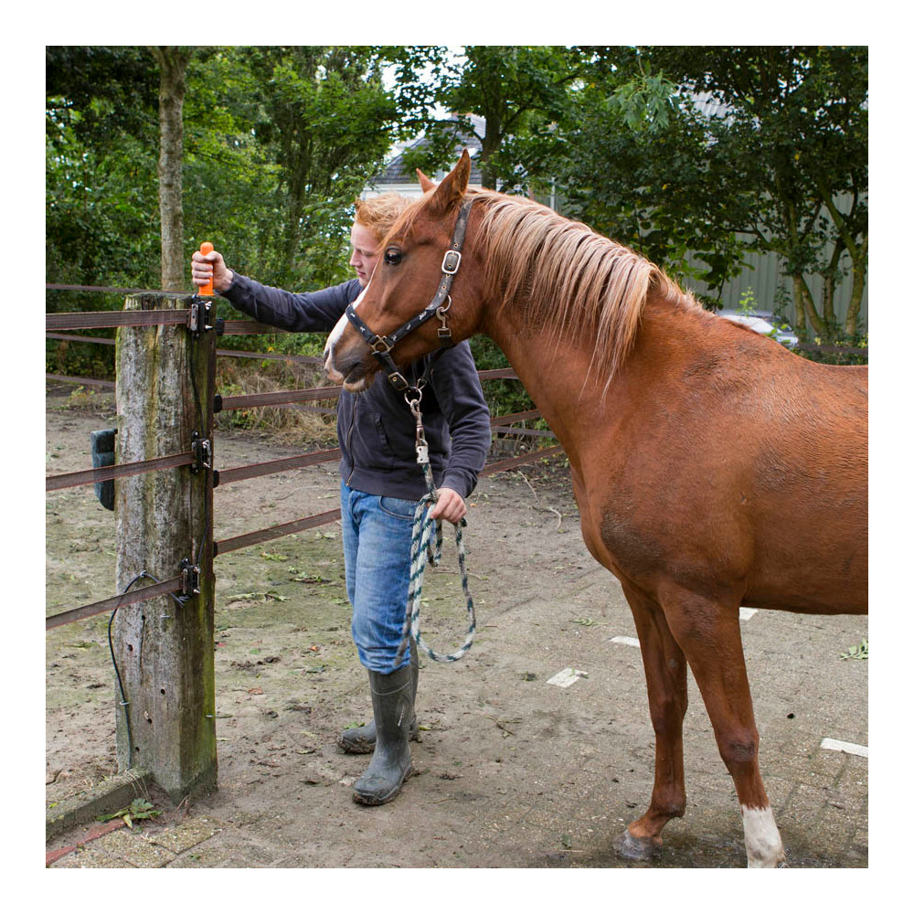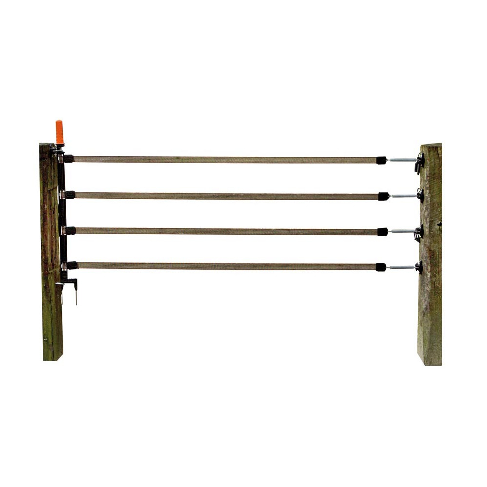 Mehrdrähtiges Torset mit 4 Weidezaunbändern (40mm), besonders geeignet für Pferdezäune. Komplettset zur einfachen Montage, eine günstige Lösung für praktisch alle Torbreiten. Länge max.: 6m