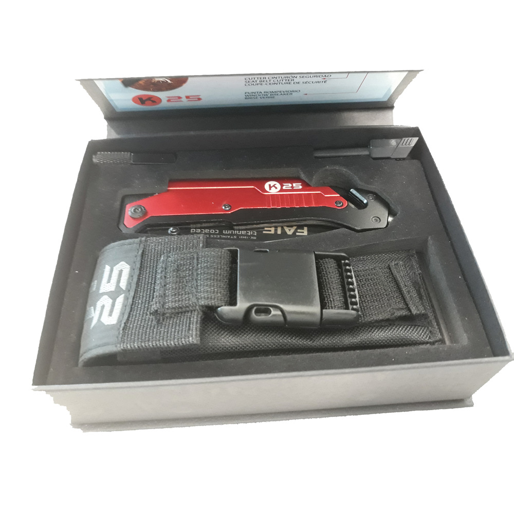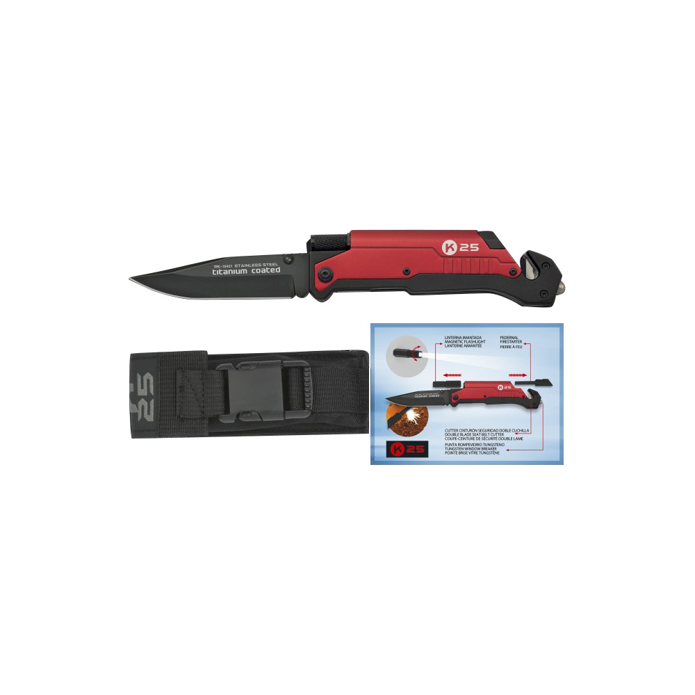 Marke: K25Griff: AluminiumKlinge: Edelstahl - titanbeschichtetKlingengröße: 9 cmKlingenstärke: 2,5 mmEnthält: