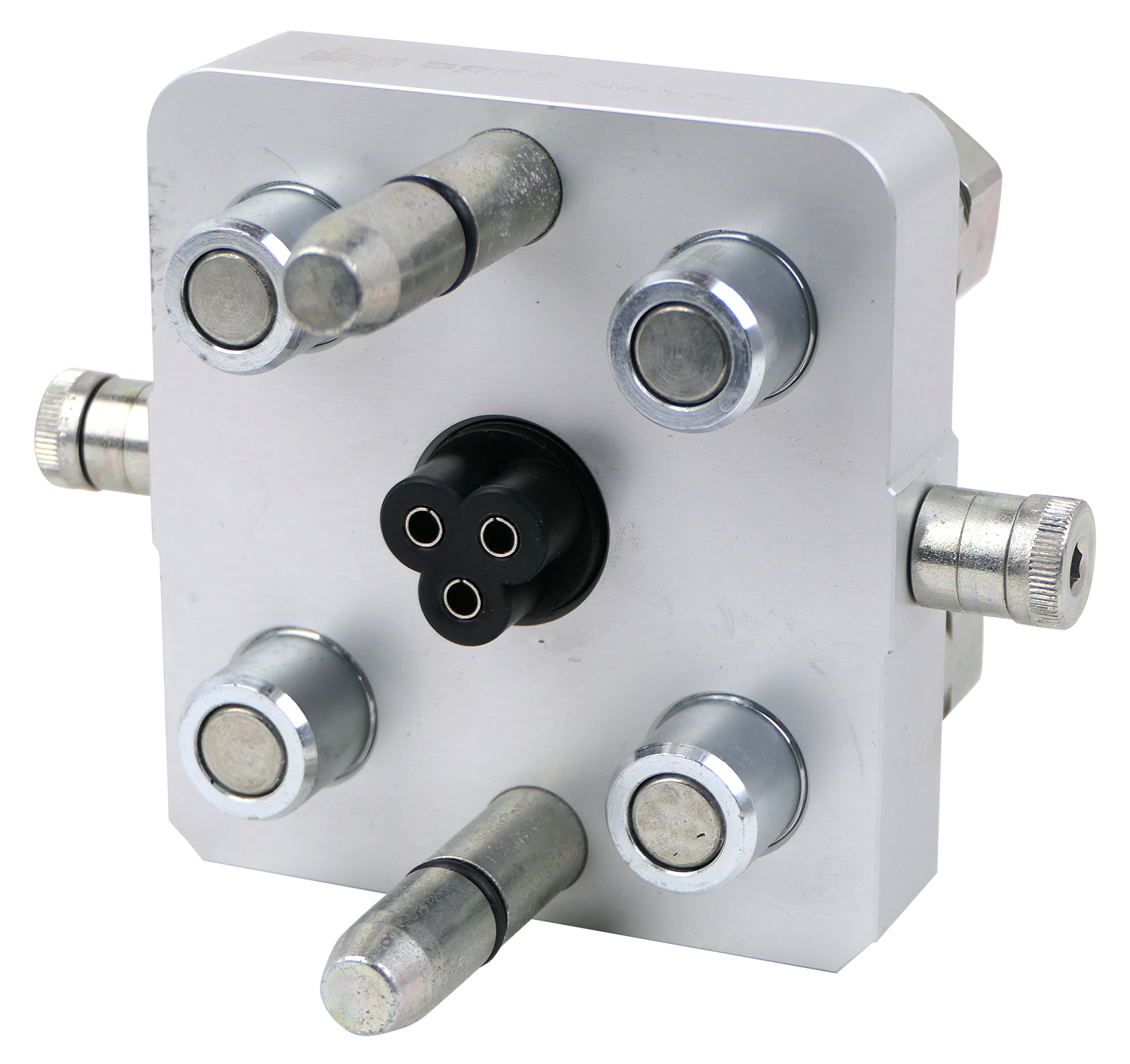 Die Multikupplung PSF von dnp wurde entwickelt um das Kuppeln unter Restdruck auf der Werkzeugseite zu ermöglichen. Die Kupplungsstecker erlauben das verbinden der Hydraulikleitungen bis zu einem Druck von 200bar! Die speziellen Dichtungen der Stecker sind für diese Anwendung ausgelegt.Die Verbindung der Hydraulikleitungen erfolgt über flachdichtende Kupplungselemente durch welche innerhalb kürzester Zeit mehrere Hydraulikleitungen miteinander verbunden oder getrennt werden. Dies geschieht mit einem Bedienhebel, dessen Führungskulisse so ausgelegt ist, dass die Bedienkräfte so gering wie notwendig gehalten werden.Die herausragenden Merkmale der Multikupplung sind die Verwechslungssicherheit der Anschlüsse, schnelle Verbindung, Kuppelbarkeit unter Restdruck sowie optimal minimierte Leckage während des Kuppelvorganges.Ein weiterer Vorteil ist die Austauschbarkeit mit der Faster Multikupplung P506. Es sind nicht nur die beiden Hälften des Multikupplers mit Faster P506 austauschbar sondern auch die Stecker und Muffen. Baugruppe 2/DN10Druck max. 250 barDurchfluss max. 46 l/minAnschluss R1/2″IG