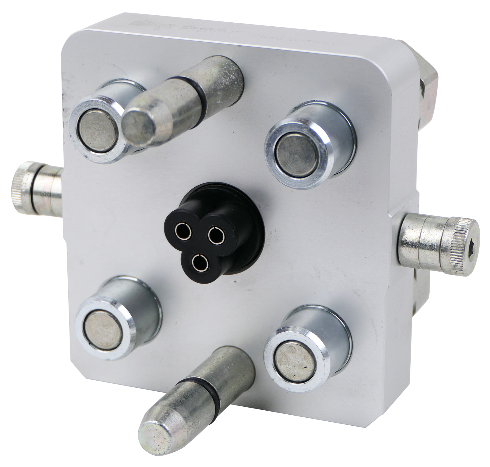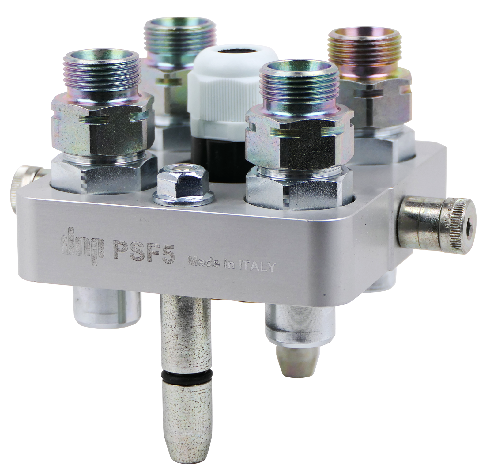 Die Multikupplung PSF von dnp wurde entwickelt um das Kuppeln unter Restdruck auf der Werkzeugseite zu ermöglichen. Die Kupplungsstecker erlauben das verbinden der Hydraulikleitungen bis zu einem Druck von 200bar! Die speziellen Dichtungen der Stecker sind für diese Anwendung ausgelegt.Die Verbindung der Hydraulikleitungen erfolgt über flachdichtende Kupplungselemente durch welche innerhalb kürzester Zeit mehrere Hydraulikleitungen miteinander verbunden oder getrennt werden. Dies geschieht mit einem Bedienhebel, dessen Führungskulisse so ausgelegt ist, dass die Bedienkräfte so gering wie notwendig gehalten werden.Die herausragenden Merkmale der Multikupplung sind die Verwechslungssicherheit der Anschlüsse, schnelle Verbindung, Kuppelbarkeit unter Restdruck sowie optimal minimierte Leckage während des Kuppelvorganges.Ein weiterer Vorteil ist die Austauschbarkeit mit der Faster Multikupplung P506. Es sind nicht nur die beiden Hälften des Multikupplers mit Faster P506 austauschbar sondern auch die Stecker und Muffen. Baugruppe 2/DN10Druck max. 250 barDurchfluss max. 46 l/minAnschluss R1/2″IG