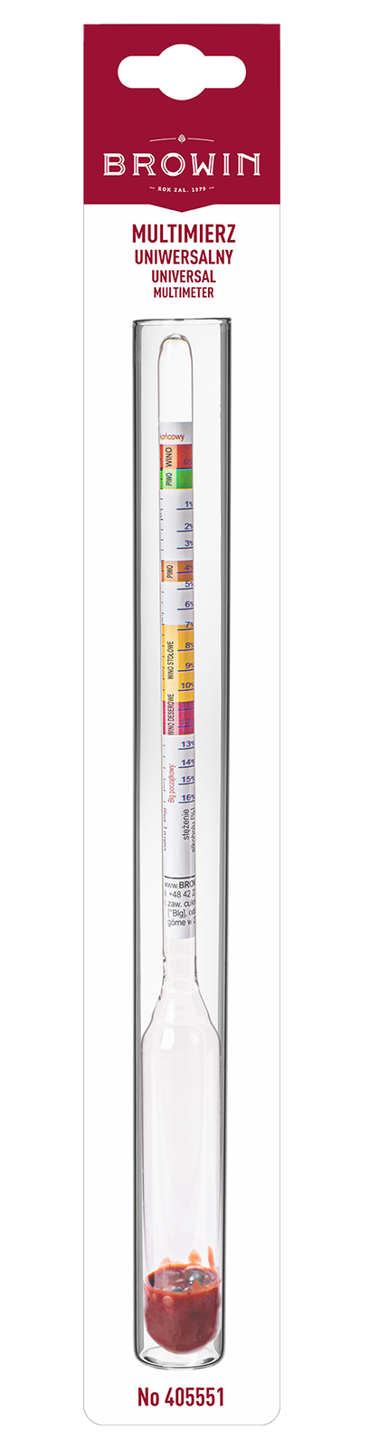 Der Wein kann auch am Ende der Gärung gesüßt werden. Die Messung des Zuckergehalts in der Bierwürze erfolgt ähnlich wie beim Wein. Auf der Skala wurde der empfohlene Bereich der Zuckerkonzentration in der Anfangsphase mit einer Bernsteinfarbe (8 - 10 Blg°) markiert. Die Gärung der Bierwürze gilt als beendet, wenn die Werte im grünen Bereich (0 - 2 Blg°) liegen.
