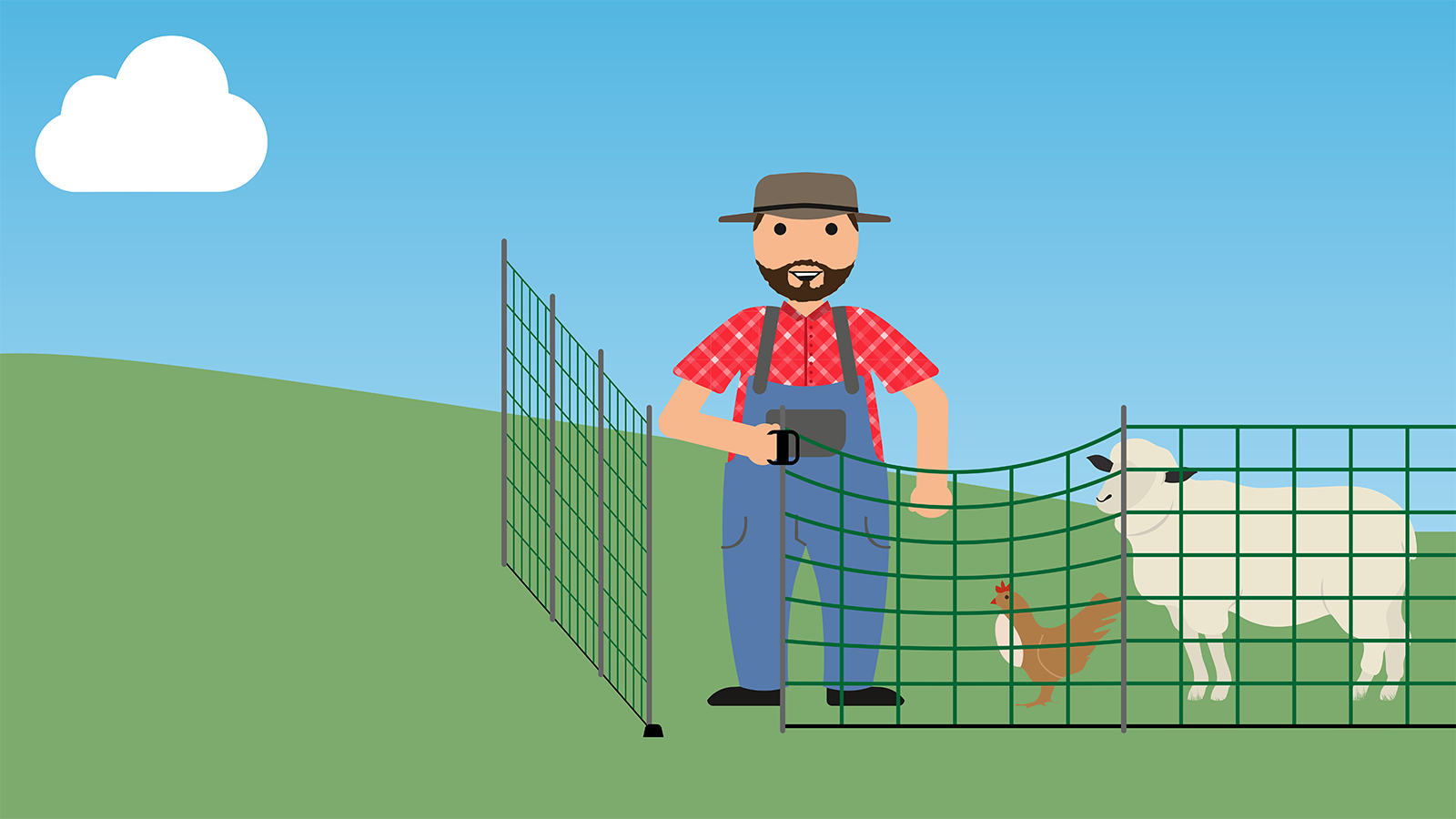 - ist das Netz elektrifiziert, muss der Strom nicht abgestellt werden, um die Weide zu betreten bzw. um zu Ihren Tieren zu gelangen: der extrem robuste und großzügige Griff erlaubt es, durch den Durchgang im Zaun zu gehen ohne die Elektrifizierung vom Netz zu nehmen