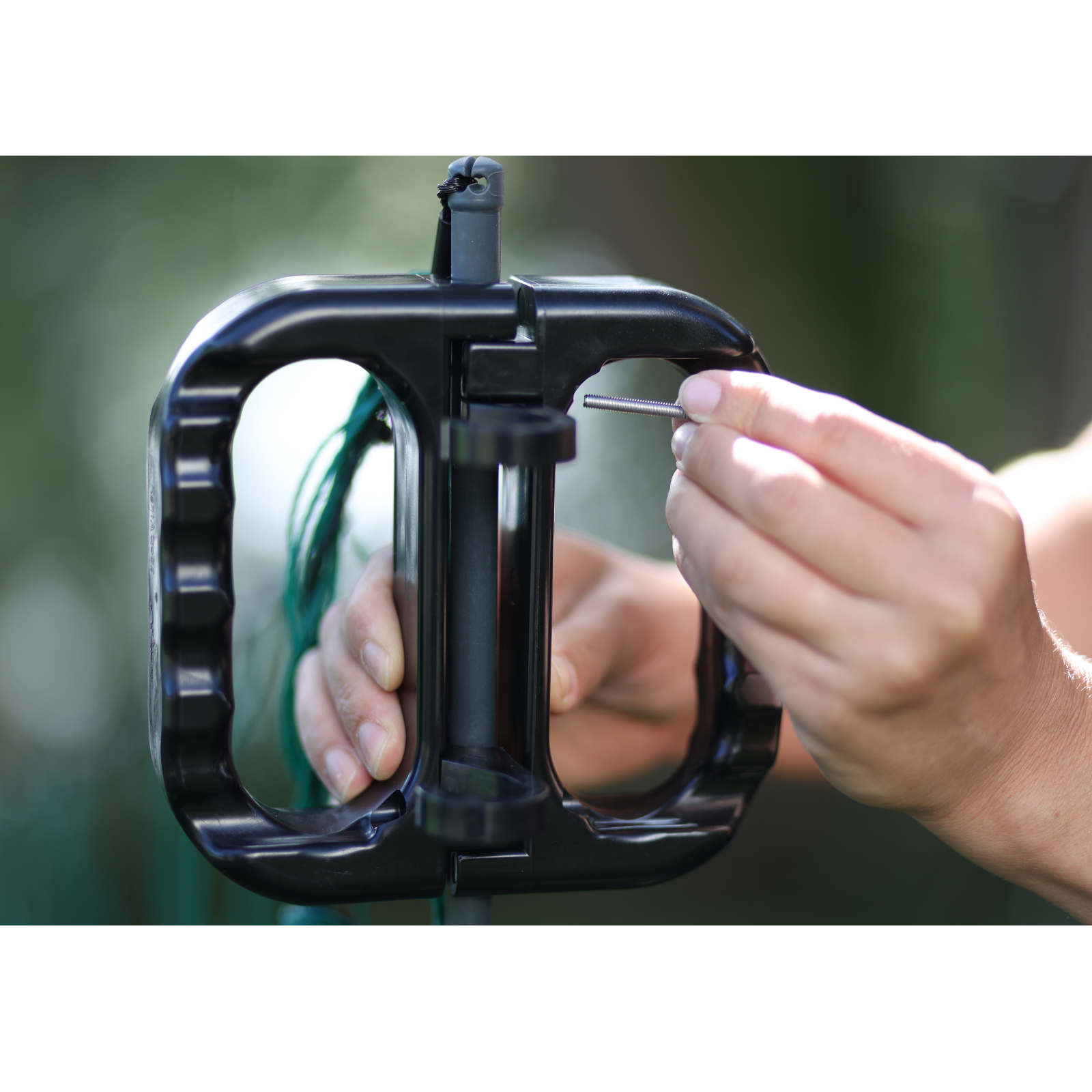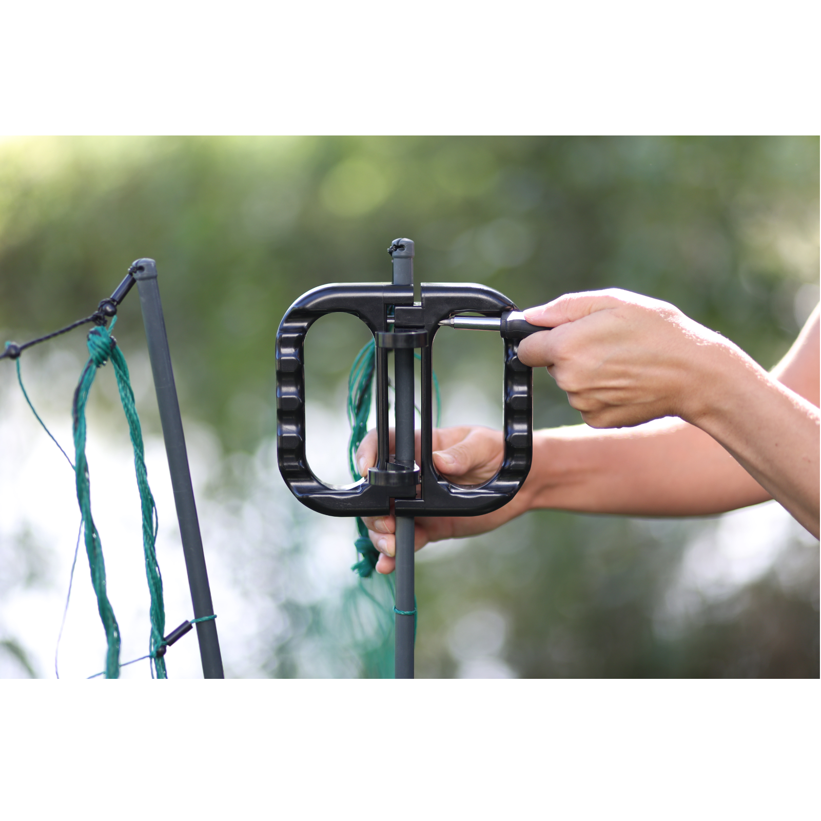 - das Set ist einfach zu handhaben und zu montieren: es passt auf Netzpfähle mit einem Durchmesser von 11 mm bis 19 mm bei allen Typen von Weidenetzen und ist kompatibel mit elektrifizierten und stromlosen Netzen