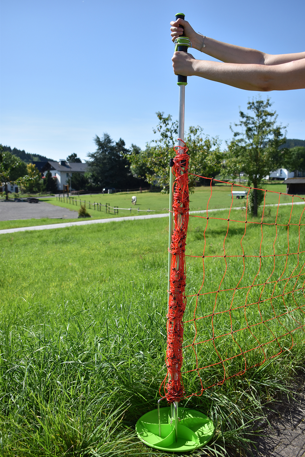 Sie sparen Zeit und Nerven bei Auf- und Abbau, das Lagern und Transportieren von Weide-, Schaf-, oder Geflügelnetzen bis 125cm Höhe wird zum Kinderspiel!