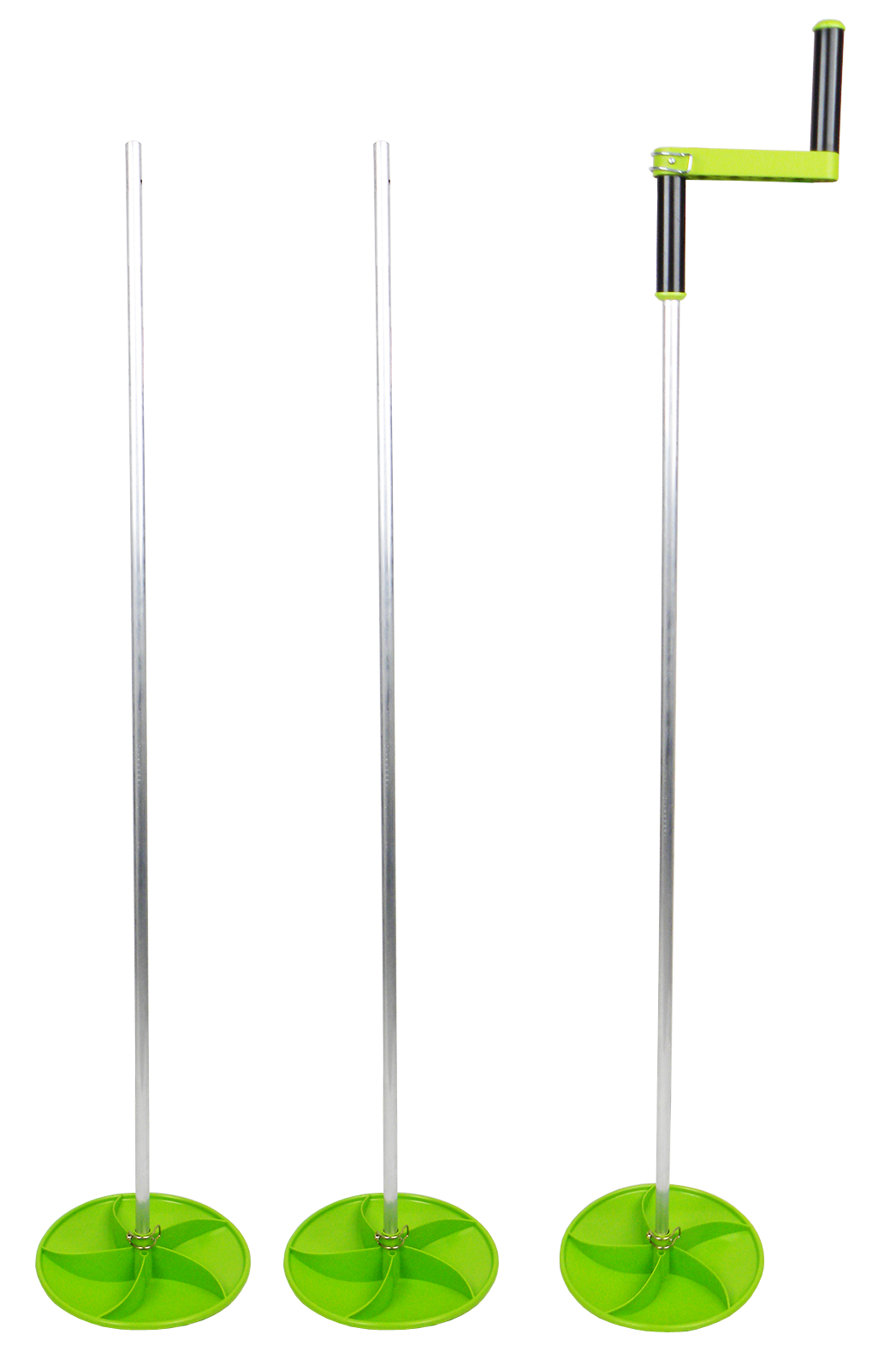 Vorteile: keine zweite Person erforderlich, robuste Qualität, abnehmbare Kurbel.Geeignet für alles Weidenetze bis 125 cm HöheLieferumfang: 3 Aufbewahrungs-Basiselemente (Teller mit Stab) und 1 Kurbel.
