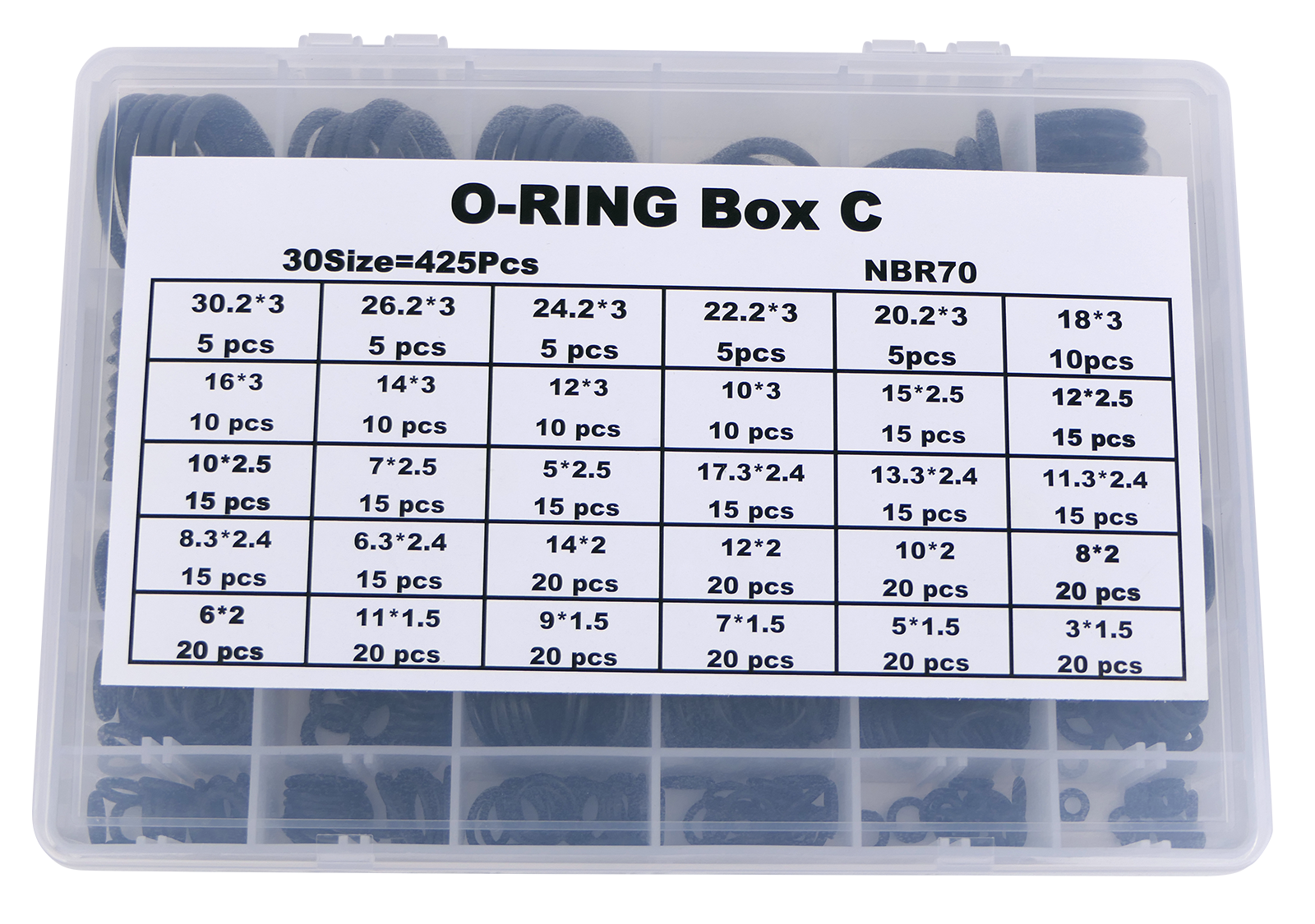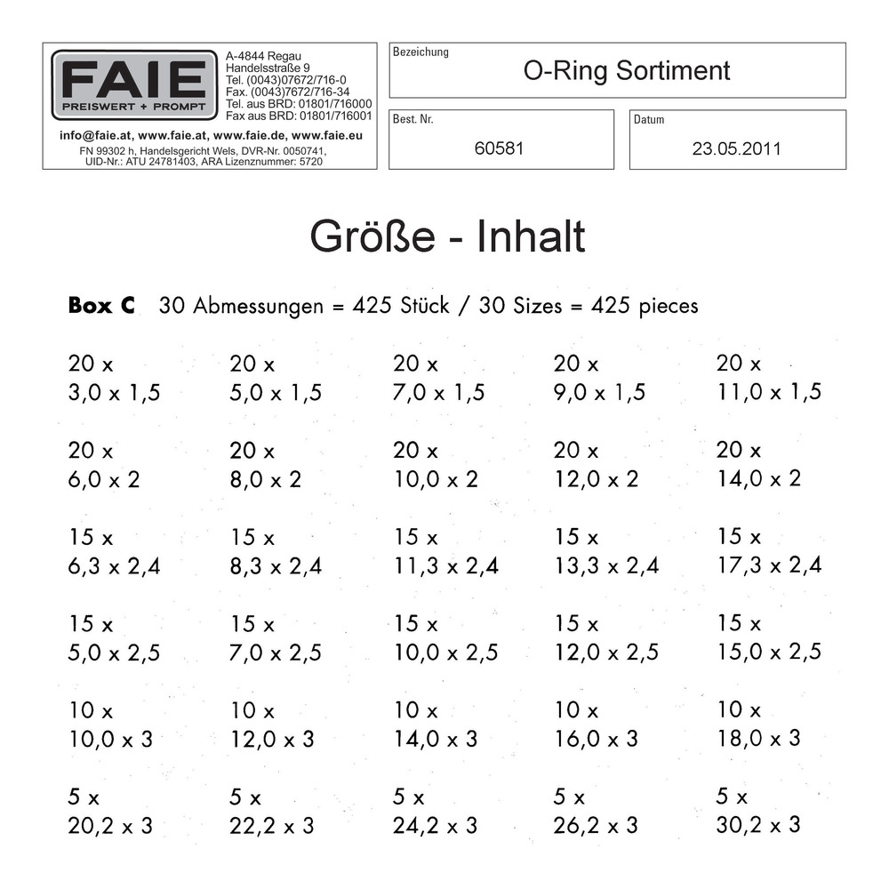 425-teilig,Ø 3x1,5 bis Ø 30,2x3 mm, Qualität 70 shore.