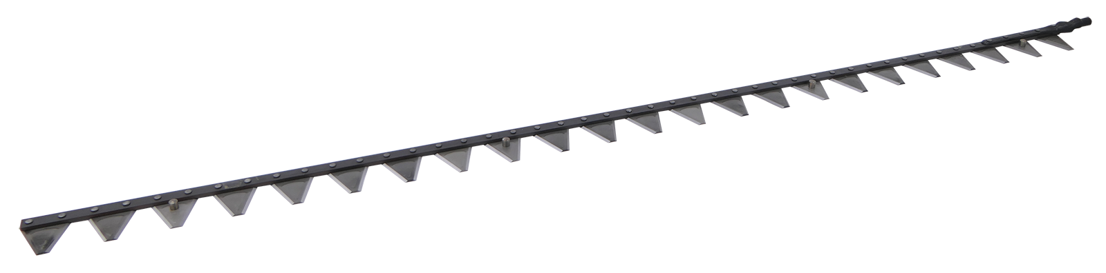 Obermesser zu Doppelmesserbalken Busatis mit einer Gesamtklingenanzahl von 23 Stück. Davon sind 4 Stk. Klingen mit Pilz zur Aufnahme der Messerführungsarme. Die Teilung der Klingen im Abstand von Klingenmitte zu Klingenmitte ist 76mm. Das Messer wird komplett mit dem aufgenieteten Obermesserkopf, auf der linken Seite in Fahrtrichtung gesehen, geliefert.Passend zu Motormäher Bucher und Reform Kombi M12 mit Busatis Doppelmessermähwerk.Gesamtlänge mit Messerkopf: 179 cmLänge Messerrücken: 173 cmMesserkopf in Fahrtrichtung links, 56 mm Überstand über den MesserrückenMesserkopflänge: 232 mmGesamtanzahl Klingen: 23 Stk., davon 4 Stk. PilzklingenPosition der Pilzklingen vom Messerkopf ausgehend: 2., 8., 15. und 21. KlingeKlingenteilung (Klingenmitte auf Klingenmitte): 76mm
