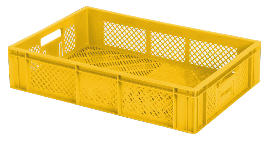 Obst- und Gemüsekiste stapelbar mit beidseitigem ‘Organic-Tools‘ Relieflogo. Angenehm zu tragen durch ergonomische, große Griffe. Wegen kleiner Durchbrüche auch für Haselnüsse und Walnüsse geeignet. Stapelfähige europalettengerechte Größen. Säure- und laugenunempfindlich. Geschmacks- und geruchsneutral. Lebensmittelecht. Kälte- und Hitzebeständig von -40° bis +80°C. UV-beständig. Farbe: gelb. Volumen ca. 35 Liter. Leergewicht 1.400 g. 600x400x170 mm.