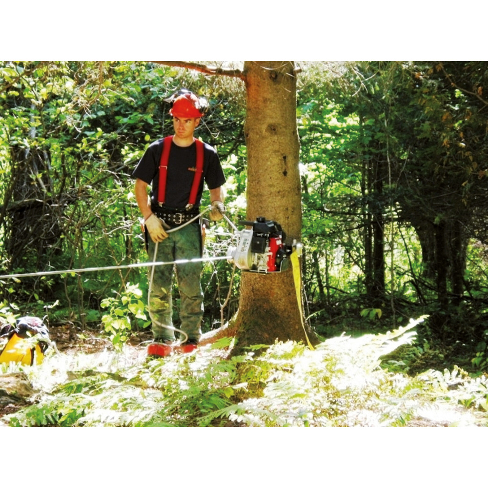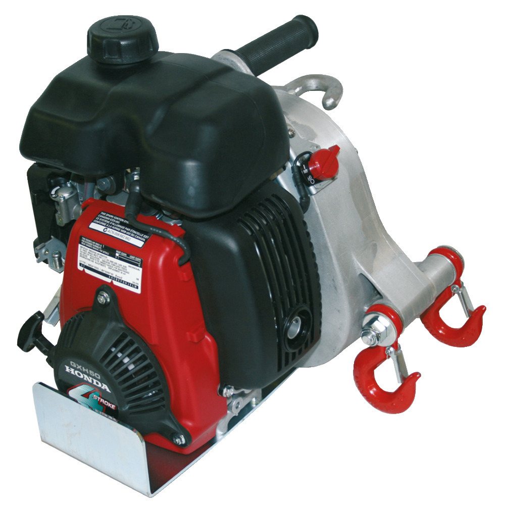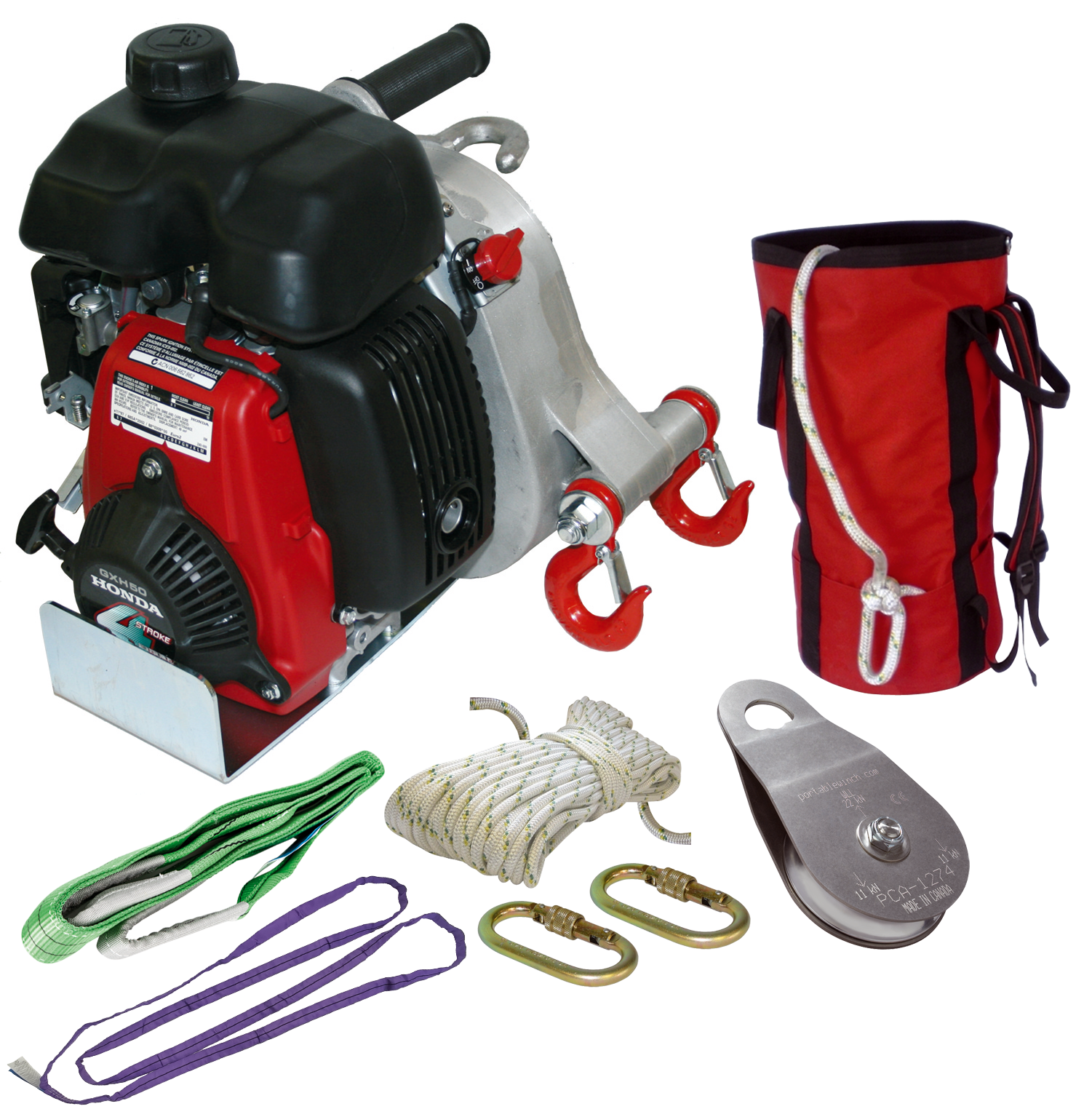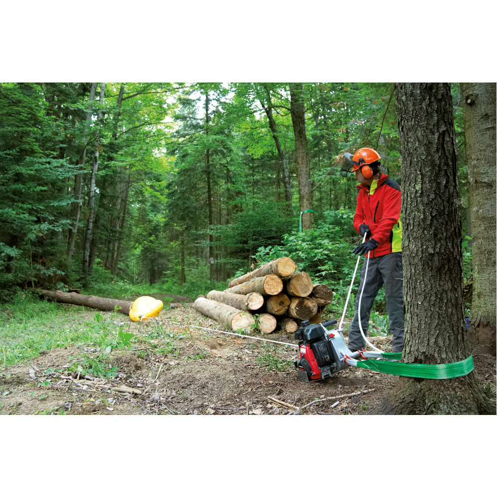 Tragbare Seilwinde Portable Winch PCW mit 1000 kg Zugkraft inklusive BaumschonerMit starkem 50 cm³ Honda 4-Takt Benzinmotor, für spiralgeflochtene Kunststoffseile mit 10 - 16 mm Durchmesser geeignet, 12 Meter/Minute max. Seilgeschwindigkeit.Mit nur 15 kg Eigengewichtextrem leicht und dadurch überall einsetzbar: z.B. für Durchforstungs- u. Baumpflegearbeiten, am Bau, zur Wild- bzw. zur Fahrzeugbergung, für die Feuerwehr- oder Katastropheneinsätze.