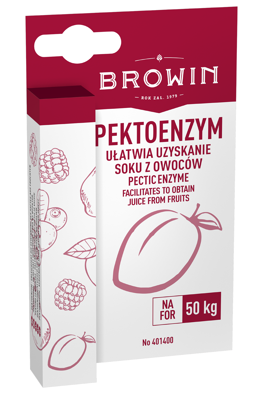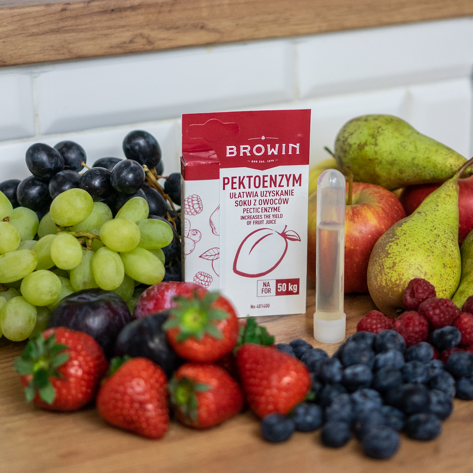 Leichteres Auspressen von Säften - Pektinase lockert die Struktur von Obst. Das Hinzufügen von Pektinase erleichtert das spätere Klären von Wein nach dem Ende der Gärung.Ergiebig - eine Packung von 10 ml reicht für ca. 50 kg Obst. Phiole mit Verschluss - erlaubt das Aufbewahren des Produkts und die spätere Nutzung des unverbrauchten Rests.Den Inhalt des Beutels mit 100 ml Wasser vermischen, das Obst gemäß der Anleitung auf der Packung übergießen, mischen und beiseite stellen.Verwendungshinweise:Das zerkleinerte Obst mit einer kleinen Menge Wasser (1-2 L auf 10 kg Obst) übergießen (40°C für Beerenobst und 80°C für Äpfel, Birnen, Pflaumen und Quitten.Wenn die Temperatur der Obstmasse auf 40°C fällt, Pektinase, zerkleinert in 100 ml Wasser von Zimmertemperatur, hinzufügen.Das Ganze gründlich umrühren und zugedeckt an einem kühlen Ort 9 bis 15 Stunden stehenlassen.Danach den Saft auspressen.Zutaten: pektolytisches Enzym