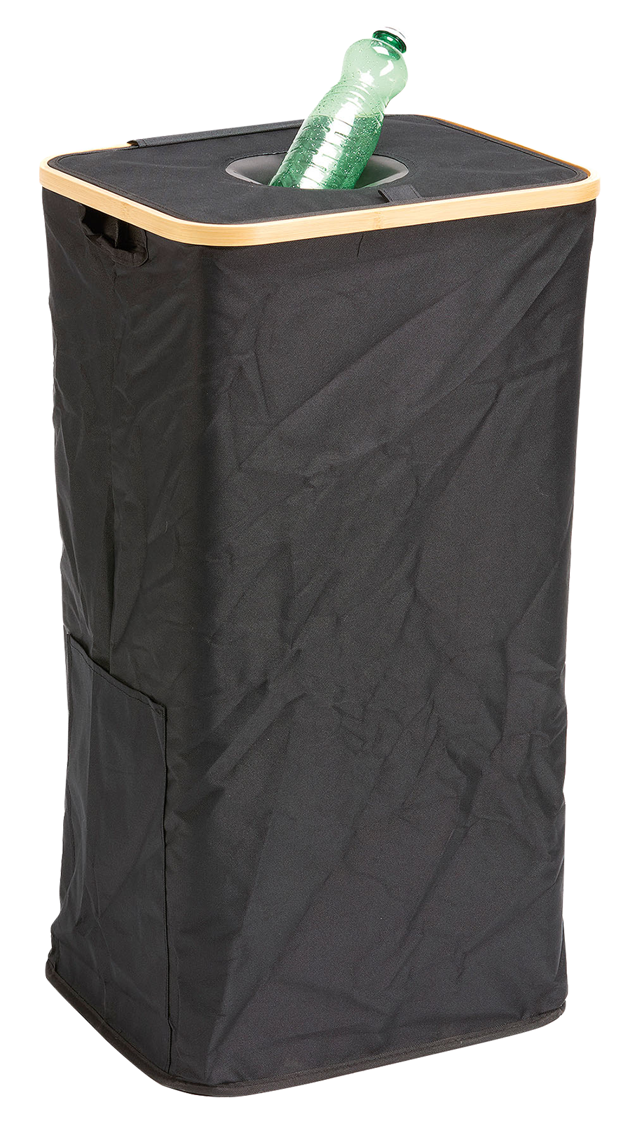 Pfandflaschenbehälter mit Deckel und Tragetasche – stilvoll, hygienisch und durchdachtDieser Pfandflaschenbehälter vereint Funktionalität mit einem modernen Look: Die strapazierfähige Tragetasche aus Polyester ist reißfest, wasserabweisend und leicht zu reinigen.Sie fasst zahlreiche leere Pfandflaschen – egal ob PET oder Glas – und macht Schluss mit dem Chaos in Haus, Garage oder auf dem Hof.Besonderes Highlight ist der Deckel aus Bambus. Er sorgt nicht nur für einen sauberen Abschluss, sondern verleiht dem Behälter auch ein natürliches und ansprechendes Design. Der Deckel verhindert Gerüche und schützt den Inhalt vor Insekten und Schmutz – ideal für den Einsatz in Küche, Vorratsraum oder auf dem Balkon.Die Tragetasche lässt sich dank stabiler Tragegriffe einfach entnehmen und zum nächsten Rückgabeautomaten mitnehmen.Nach dem Leeren kann sie platzsparend zusammengefaltet werden. Waschbar bis 40° C.Material: Tasche aus Polyester, Oxford 600 D Gewebe + Deckel aus BambusBesonderheiten: Abnehmbarer Deckel, Tragegriffe, leicht zu reinigenPerfekt für alle, die Pfandflaschen praktisch sammeln und stilvoll verstauen wollen – ob zu Hause oder unterwegs.Maße: 40,5 x 33 x 73 cm