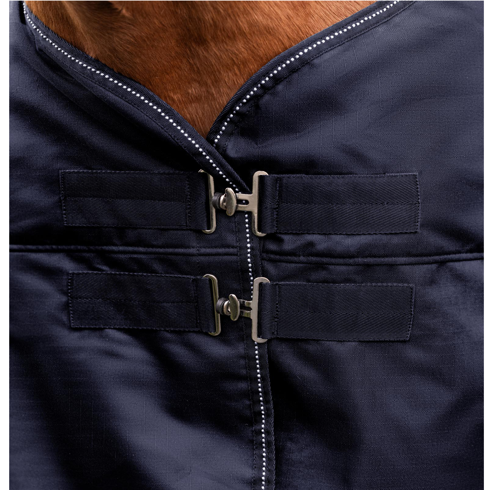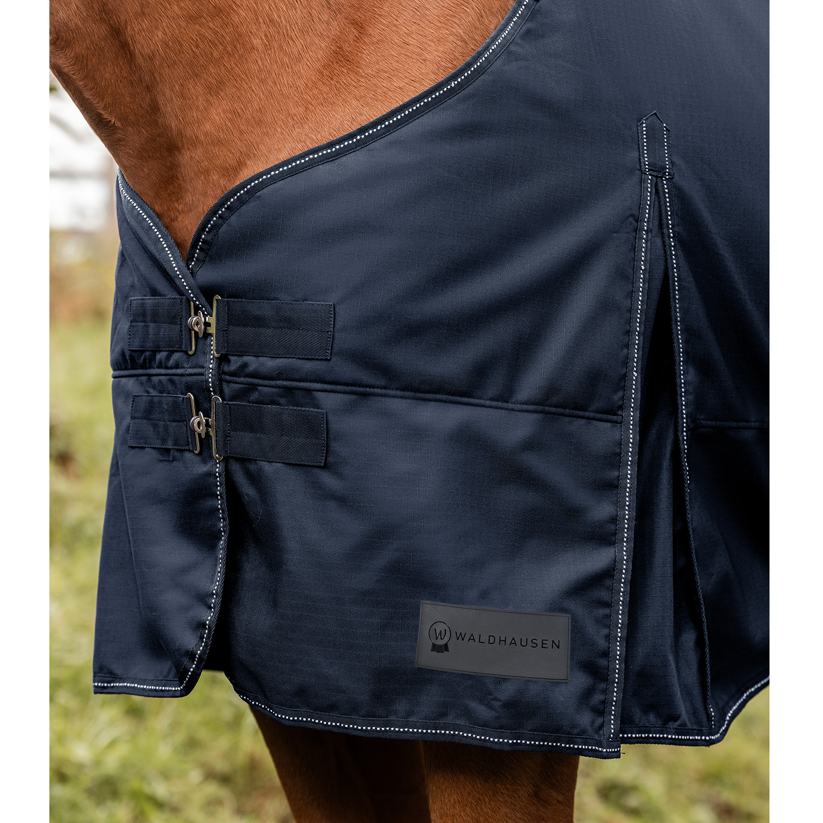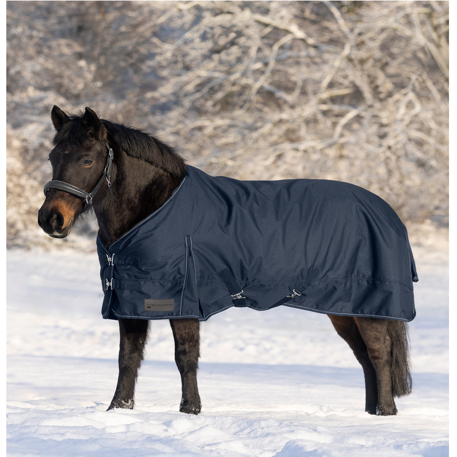 Mit der Waldhausen Nordic Outdoordecke bieten Sie ihrem Pferd einen optimalen Outdoor-Komfort an kühlen Tagen.Die doppelten T-Frontverschlüsse sorgen für eine gute Passform.Das Einfassband mit reflektierenden Details erhöht die Sichtbarkeit bei schlechten Lichtverhältnissen.Bewegungsfreiheit ist durch die Gehfalte gegeben.Das 600 Denier Außenmaterial ist strapazierfähig und hält ihr Pferd warmund trocken. Außenmaterial: 100% Polyester. Futter: 100% Polyester. Füllung: 100% PolyesterDetails:- 600 Denier Ripstopp- Atmungsaktiv- Wasserdicht (Wassersäule 3000 mm)- Doppelter T-Frontverschluss - Befestigungsschlaufen zur Anbringung eines Halsteils- Kompatibel mit dem Clip-In Deckensystem (Ösen und Ringe zur Befestigung einer Unterdecke)- Gehfalte - Kreuzgurte- Schweiflatz - Einfassband mit reflektierenden Details für gute Sichtbarkeit - Mit praktischer Waldhausen Deckentasche- Mit Stay-Clean Inlay