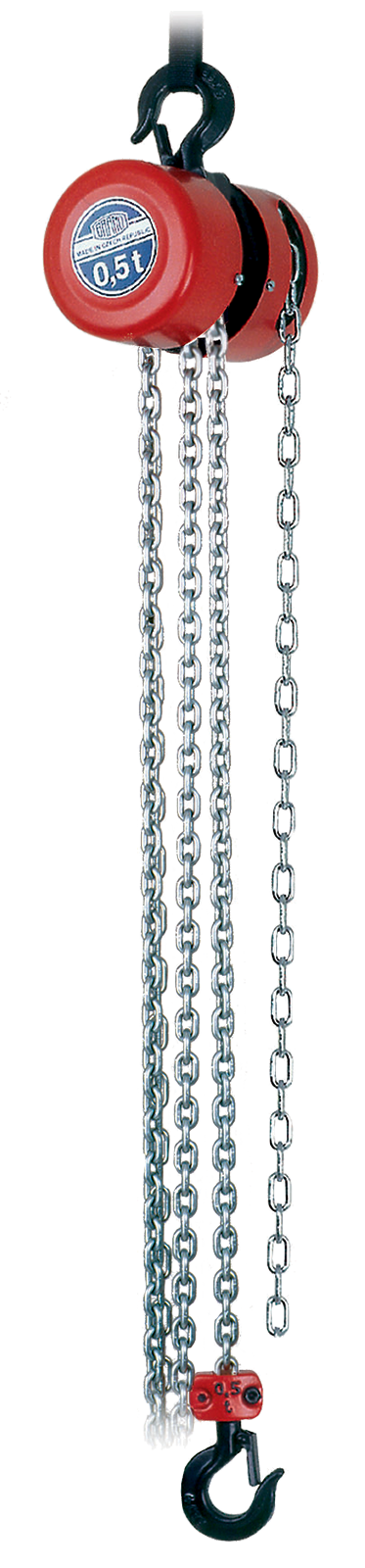 geschlossenes Gehäuse, hohe Hubgeschwindigkeit, selbstschmierende Kugellager, geprüft mit 50 % Überlast. Lastkette verzinkt mit zusätzlichem Oberflächenschutz für Außenbereich.