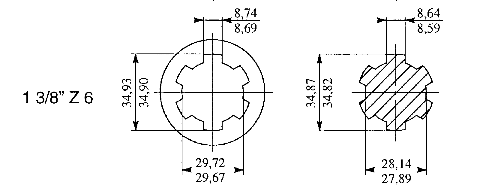 Produktinformationen "Profilwelle 1 3/8x6, Länge 1 m"