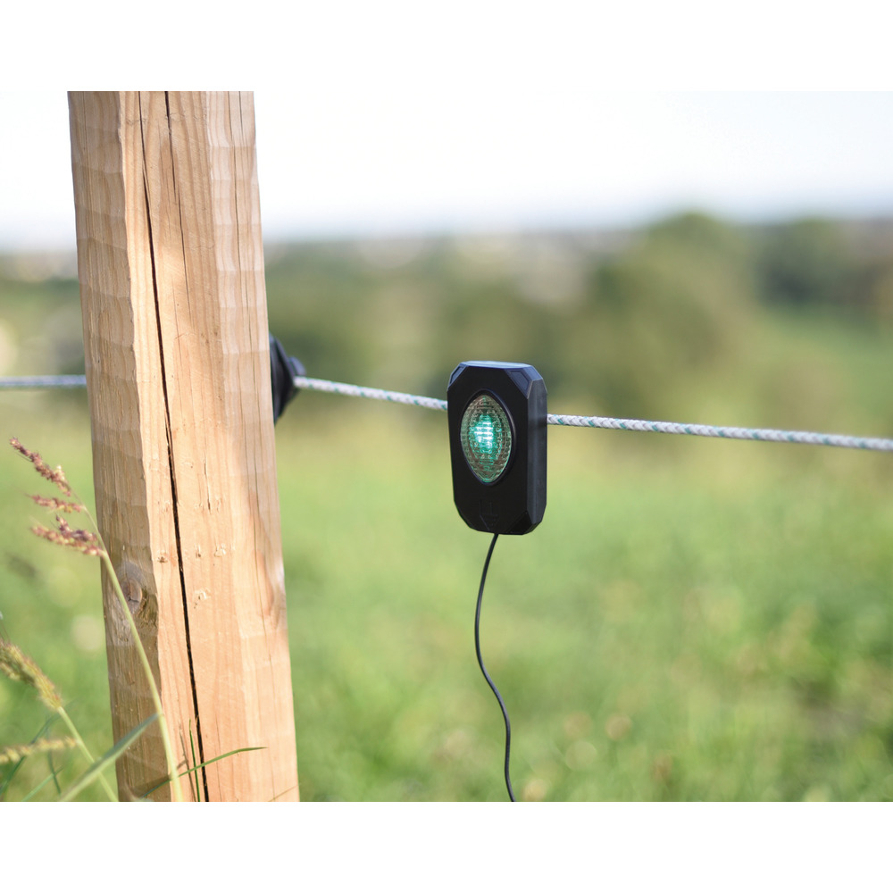 Einfaches Gerät um die minimale Zaunspannung und damit die Hütesicherheit (min. 2.500 V) auf einem Blick kontrollieren zu können!Der Pulse Flash blinkt bei jedem Zaunimpuls grün auf und hört bei einer Spannung unter 3.000 V auf. Kann idealerweise an mehreren Stellen am Weidezaun platziert werden - so bewahren Sie immer den Überblick!Wird direkt am Leitermaterial befestigt (geeignet für Bänder bis 40mm Breite und Seile und Litzen bis 8mm Ø), der Erdstab wird einfach in den Boden gesteckt. Kann auch der zusätzlichen Abschreckung von Wildschweinen dienen! Keine Batterien erforderlich!Expertentipp: Platziere den Pulse Flash am Ende der Zaunanlage. Auf einen Blick kannst Du somit feststellen, ob am Ende des Zaunes und damit auf der kompletten Anlage die Spannung von 3000 Volt fließt, was die Mindesthütespannung für die meisten Tierarten bei normalen Böden abdeckt.