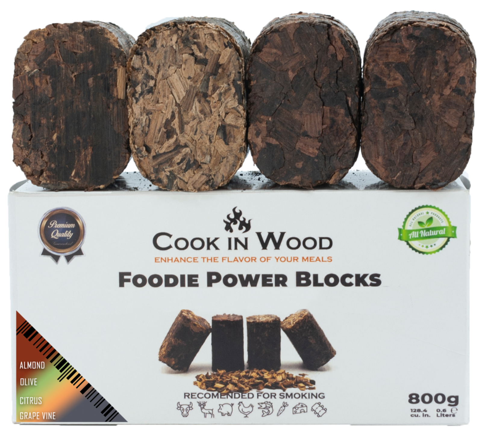 Die COOK IN WOOD Räucherblöcke bestehen aus 100 % natürlichem Holz, ohne Zusatzstoffe.