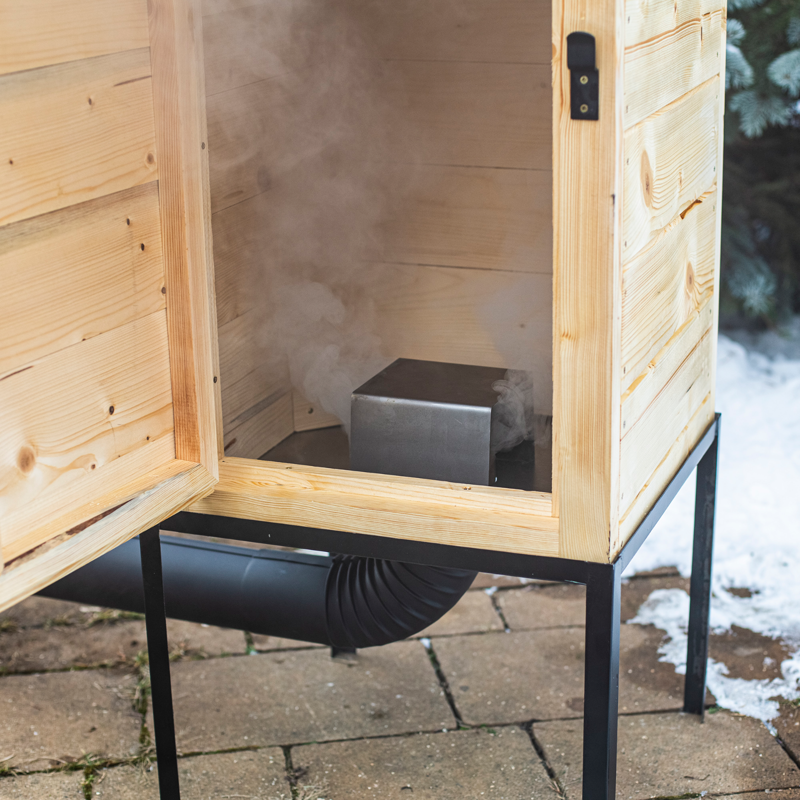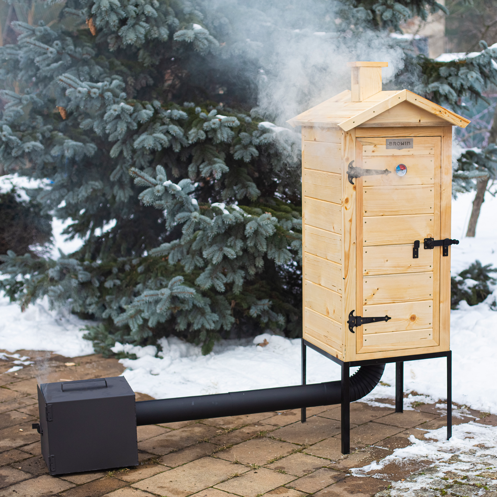 Produktinformationen " Räucherofen aus Holz 100 cm mit externer Feuerstelle "