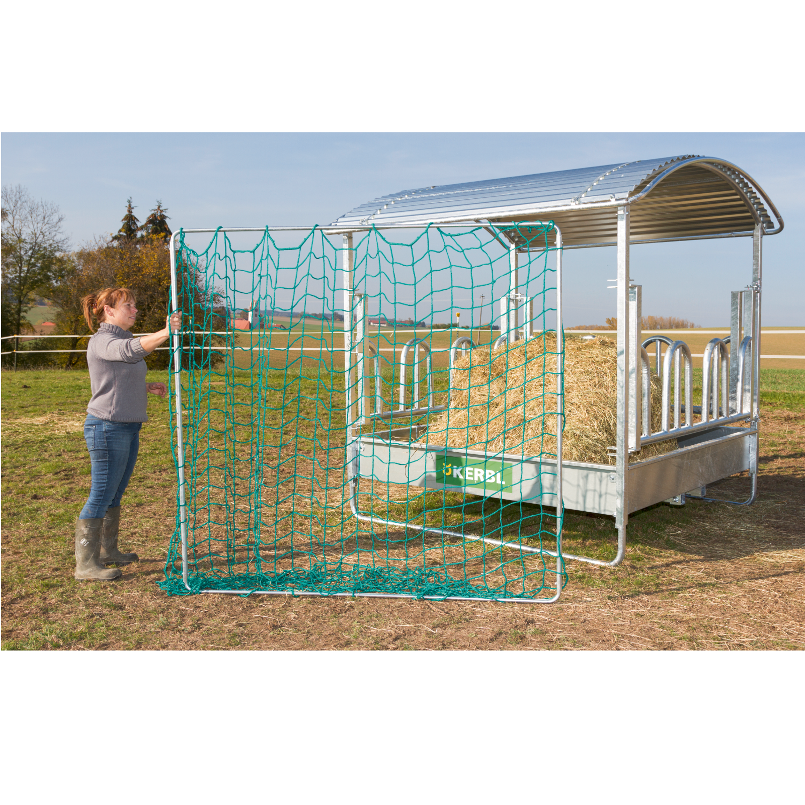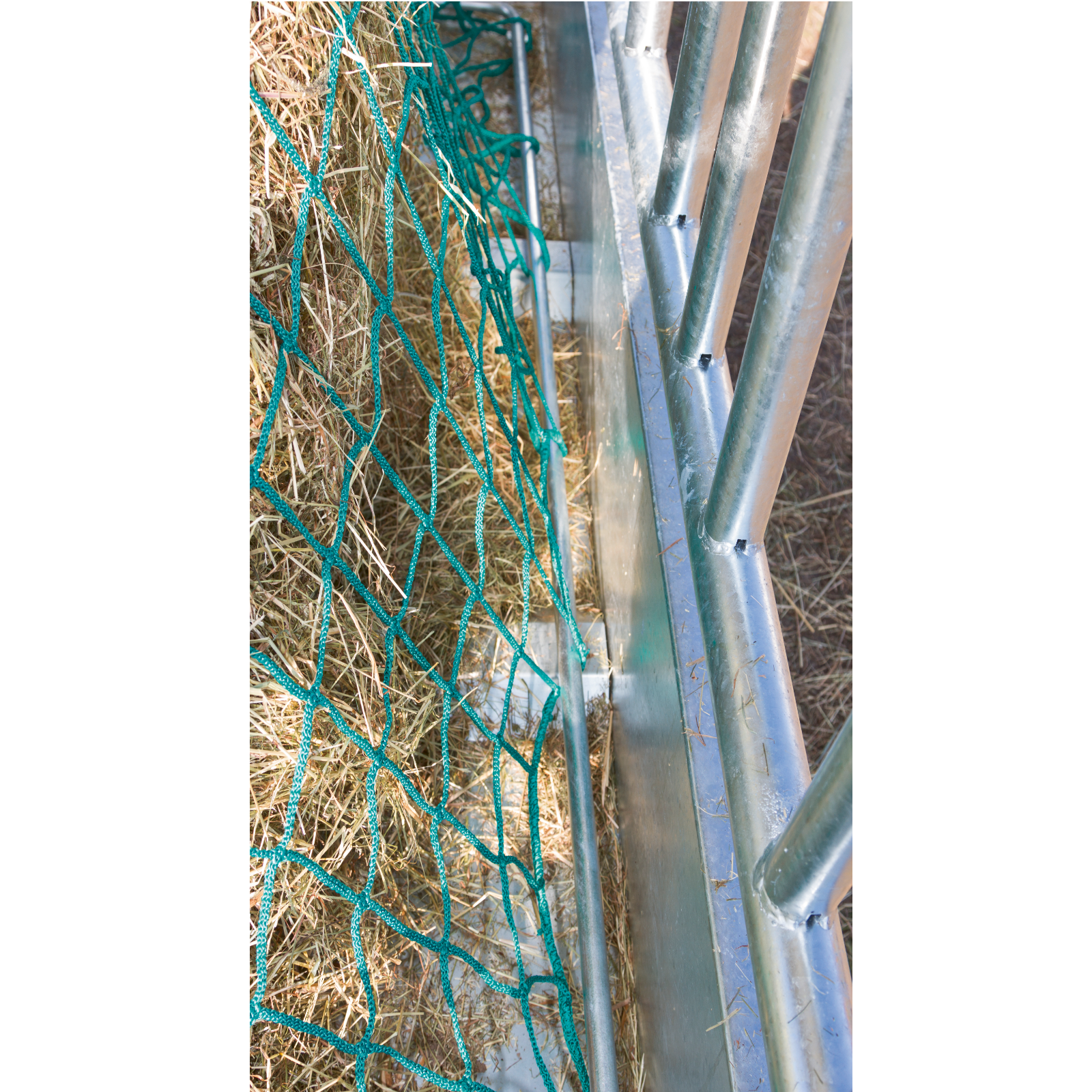 Das Futtersparnetz wird über das Futter bzw. über den Ballen gespannt. Durch die geringe Maschenweite fressen die Tiere langsamer und gründlicher, was zur verbesserten Verdauung beiträgt! Es verringert die Staubbildung und ermöglicht eine artgerechte Futteraufnahme. Durch das Netz verringern sich auch die Futterverluste.Material: PPKnotenloses Netz, Ränder verstärkt und umkettelt, Materialstärke ca. 5 mm.Inkl. 5 Haken und Gummiband zur Befestigung. Größe: 2,8 x 2,8 m; Maschenweite: 4,5 cm