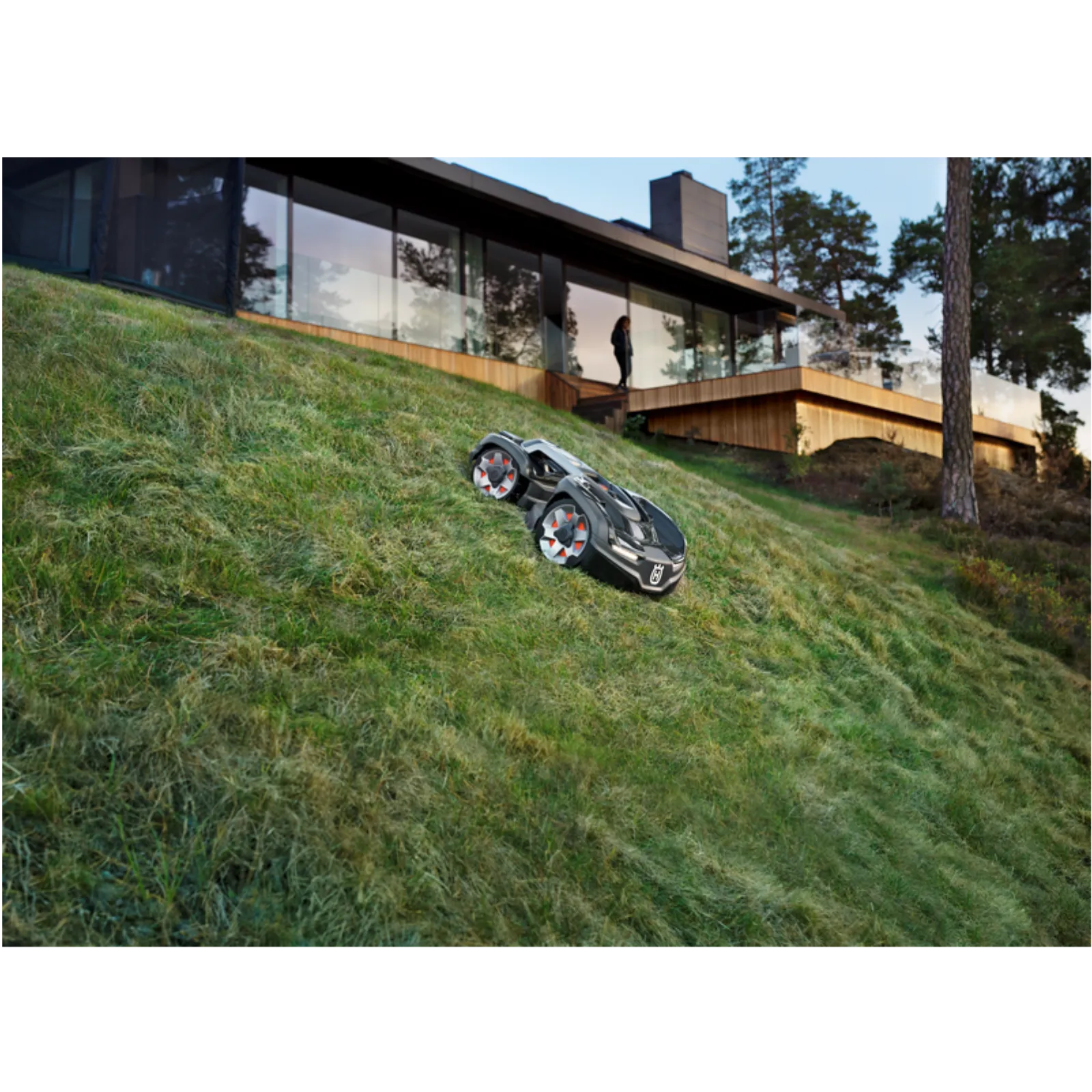 Allrad-Mähroboter für Flächen bis 3.500 m². Bewältigt extreme Steigungen bis 70 % dank Gelenkkörper und AWD. Kabellose Installation via Husqvarna EPOS möglich.Technische Daten: