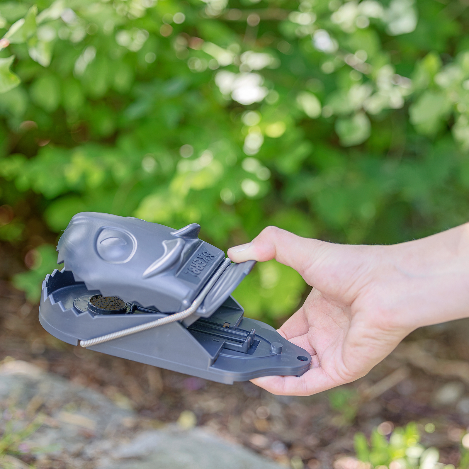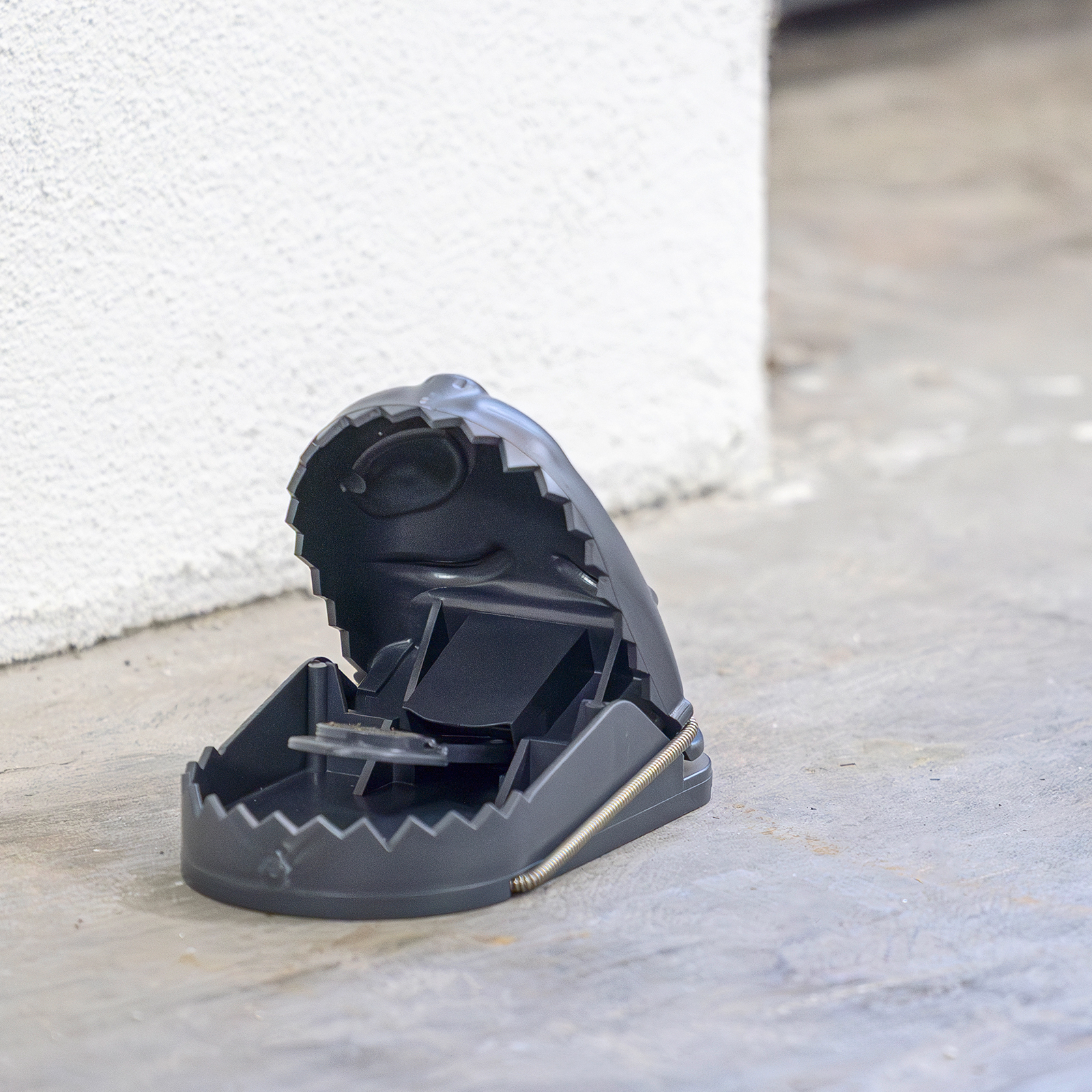 Effektive und sofort gebrauchsfertige und wieder verwendbare Schlagfalle für Ratten aus Kunststoff. Einfacher Einhand-Mechanismus zum Stellen und Entleeren der Falle.