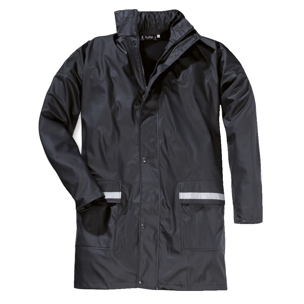 Elastische Regenjacke, wasserdicht (3000mm), winddicht, Reflektoren für zusätzliche Sicherheit, einrollbare Kapuze, Wetterschutzleiste, Lüftungssystem am Rücken, Bund und Ärmelbündchen regulierbar, 2 Fronttaschen. Material: 100 % Polyester mit PU-Beschichtung. Größe: S-3XL.