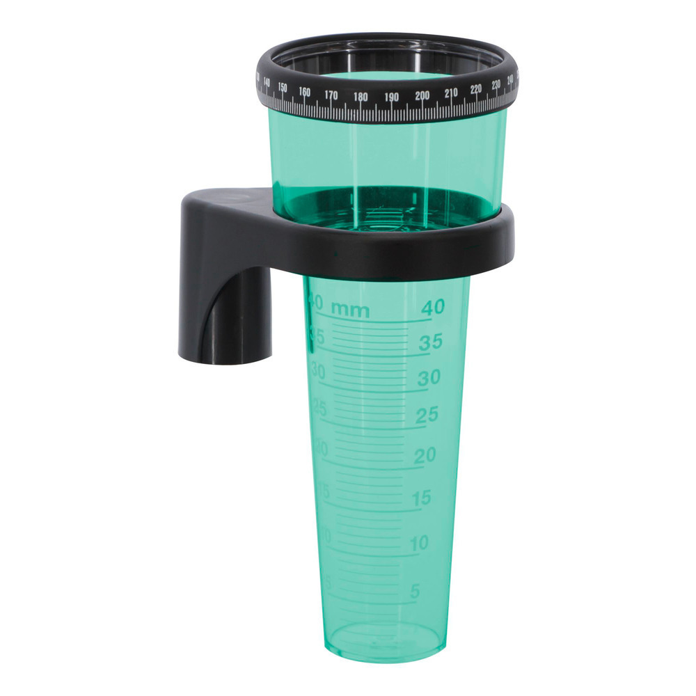 Aus Kunststoff, einfache Montage auf Rundpfahl bis ø 27 mm. Niederschlagsmenge leicht abzulesen: 1 Skalastrich = 1 mm = 1 l/m.Mit dem verstellbaren Zählring können die monatlichen Niederschlagsmengen leicht aufsummiert werden. Einfach den Drehring um die jeweils hinzugekommene Niederschlagsmenge weiterdrehen.