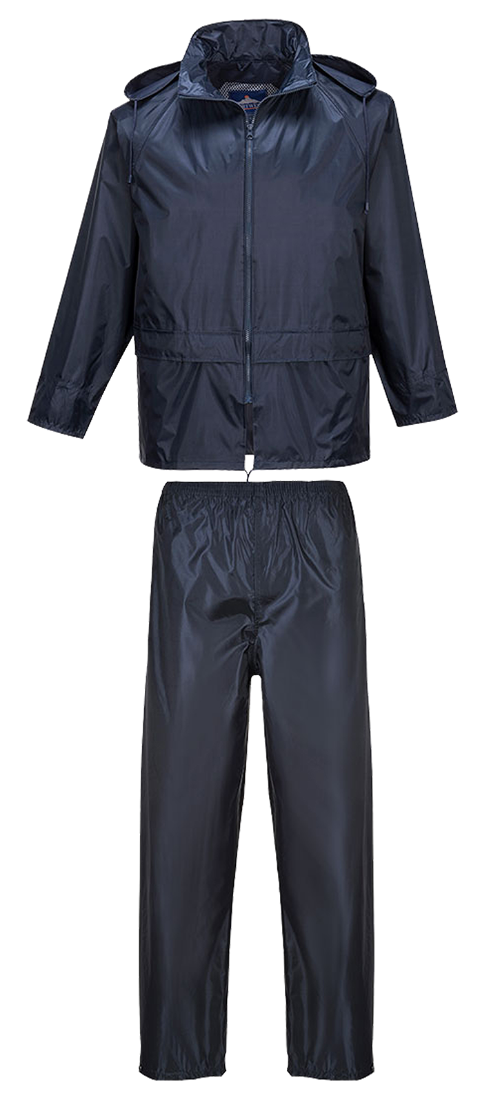 100% PVC-beschichtetes Polyester, 190 g/m², verschweißte Nähte, Frontreißverschluss aus Kunststoff, 2 großzügige Taschen, verstaubare Kapuze, Ösen unter den Armen und Belüftungsöffnungen am Rücken, vollelastischer Bund, Beinende mit Druckknopf verstellbar