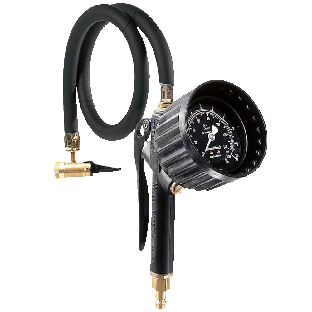 Geeichte und extrem robuste Ausführung für den Einsatz auf Tankstellen oder  Werkstätten. Mit Doppelskala-Manometer (Ø 80 mm) und Hebelstecker.