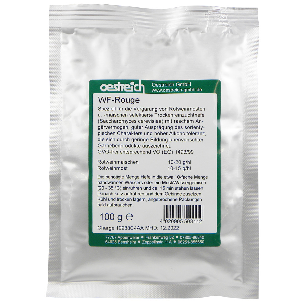Speziell für die Vergärung von Rotweinmaischen und -mosten selektierte Hefe mit raschem Angärvermögen - gute Ausprägung des sortentypischen Charakters - hohe Alkoholtoleranz - geringe Bildung von Gärnebenprodukten.Dosage:Rotweinmaischen: 10 - 20 g/hlRotweinmost: 10 - 15 g/hl