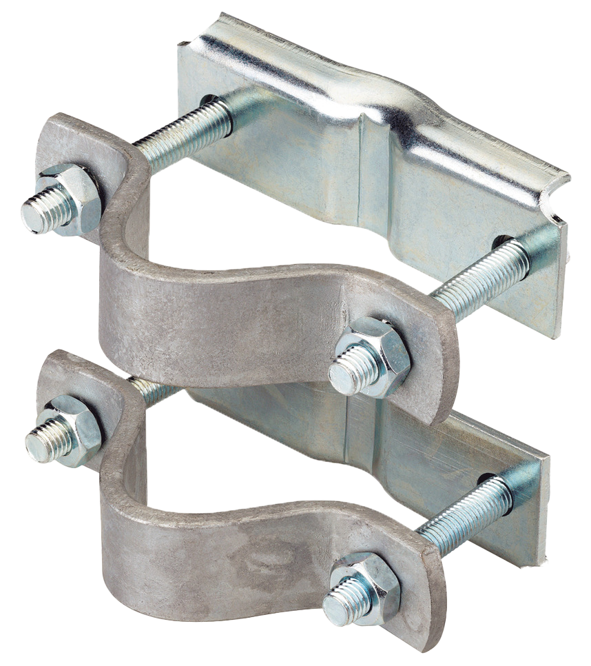 Für Rohre 11/4 Zoll bis 2 Zoll. Passend zu Lister-Tränkebecken SB2, SB22, SB112, SB113. Satz bestehend aus je 2 Schrauben mit Muttern und Scheiben, Bügeln und Gegenplatten. (Lochabstand Mitte/Mitte 100mm)