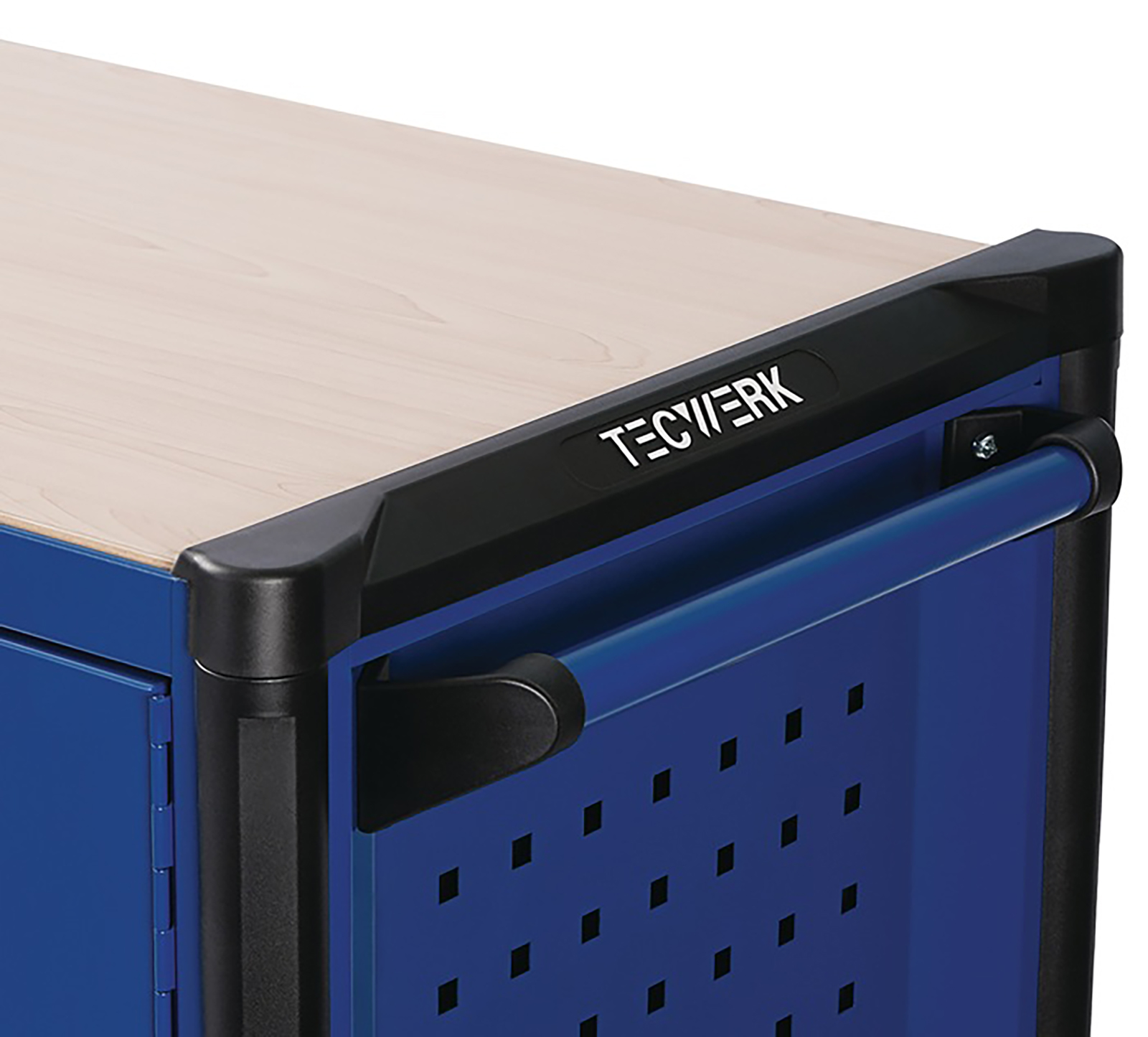 Praktische fahrbare Werkbank mit 6 Schuladen und einer absperrbaren Tür.Schubladen mit100% Auszug und 30 kg Tragkraft per Lade.Lieferumgang mit je einer Antirutschmatte pro Lade und einem Einteiler-Set für 4 Laden.Innenmaße der Laden: 3x 568 x 398 x 75 mm und 568 x 398 x 154 mm B x T x H.Zentralverriegelung für alle Laden.Der Wagen steht auch je 2 starren und 2x lenk-und bremsbaren PP-Rollen 127mm Durchmesser .Tragkraft der Wagen statisch bis 400 kg.Arbeitsfläche/Ablage aus stabilem MDF.Maße über alles: 1105 x 470 x 950 mm B x T x H.