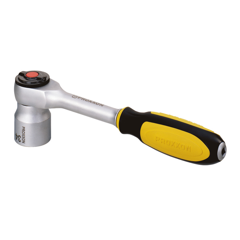 Hochwertige Umschaltknarre mit zusätzlicher Winkelschraubfunktion. Durch feinverzahntes Getriebe ( 52 Z) einfaches Lösen oder Festziehen bei engen Platzverhältnissen. Die Schraubarbeit wird bequem und rasch durch das Drehen des Griffes erledigt.