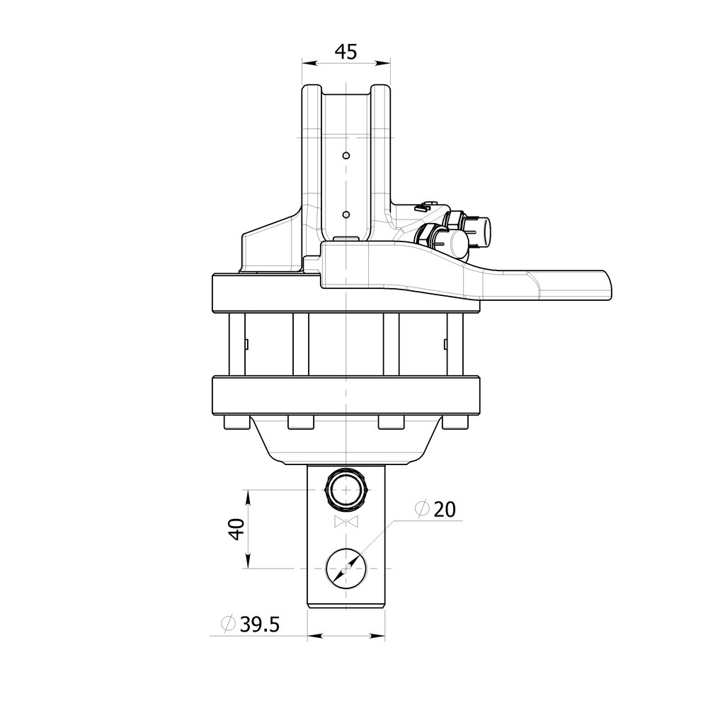 mit 39,5mm Welle und 25 mm Bohrung, max. Axiallast 1,0 Tonnen (statisch),350 Nm bei max. 250 bar, max. 300 bar für Greifer schließen, max. 200 bar für Greifer öffnen,erforderlicher Ölfluss 10 Liter/min., Anschluss 1/4“,endloser Drehbereich,Gewicht 11 kg.