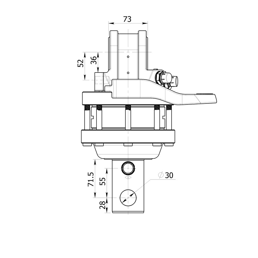 mit 59,0mm Welle und 30 mm Bohrung, max. Axiallast 4,5 Tonnen (statisch), 1050 Nm bei max. 250 bar, max. 300 bar für Greifer schließen, max. 200 bar für Greifer öffnen,