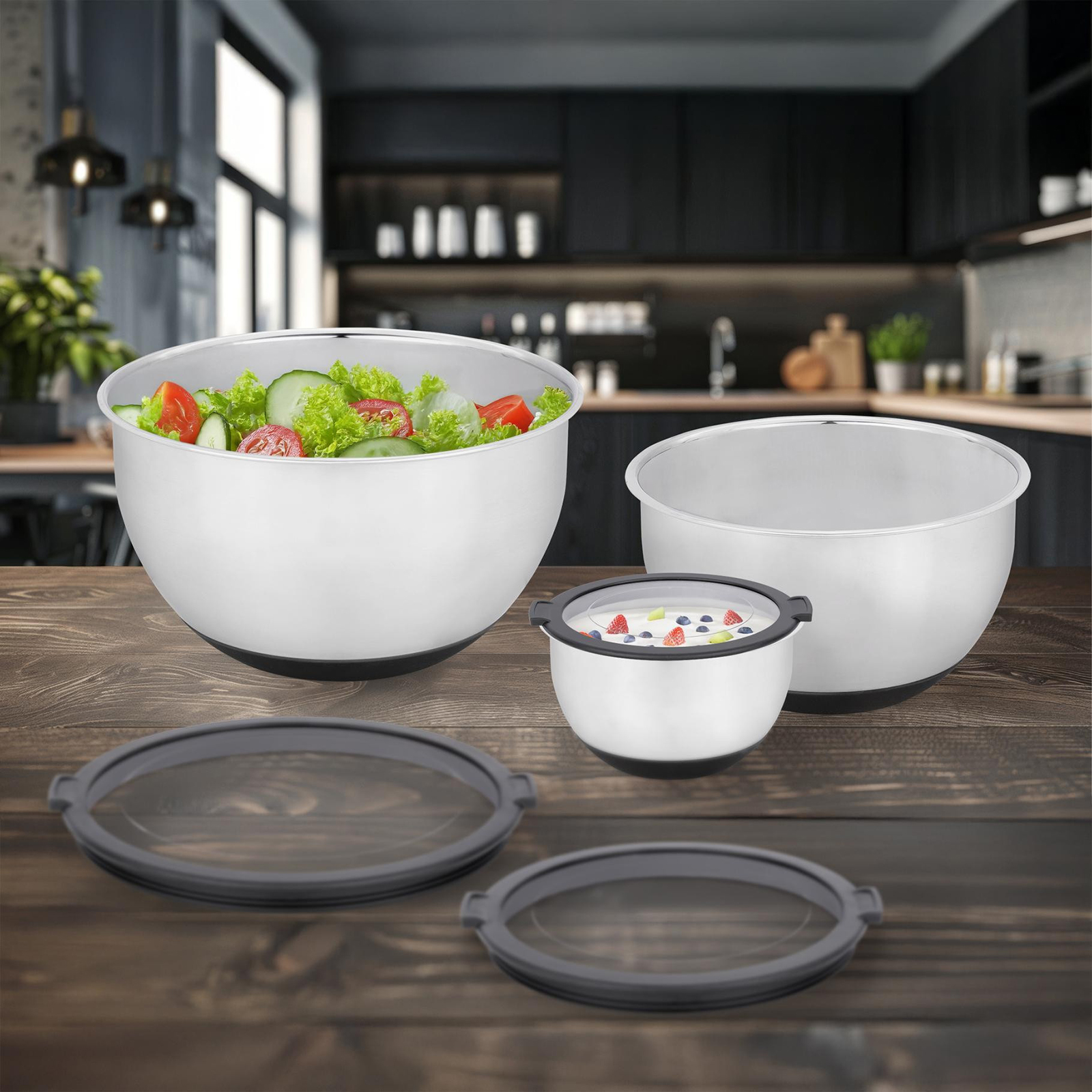 Premium Edelstahl-Behälter-Set – 3 Größen für maximale Flexibilität Ob zum Aufbewahren, Servieren oder Organisieren: Dieses Set bietet Ihnen für jede Gelegenheit die passende Größe. Gefertigt aus einer hochwertigen Materialkombination (Edelstahl, TPR und AS), vereinen diese Behälter Langlebigkeit mit modernem Design.