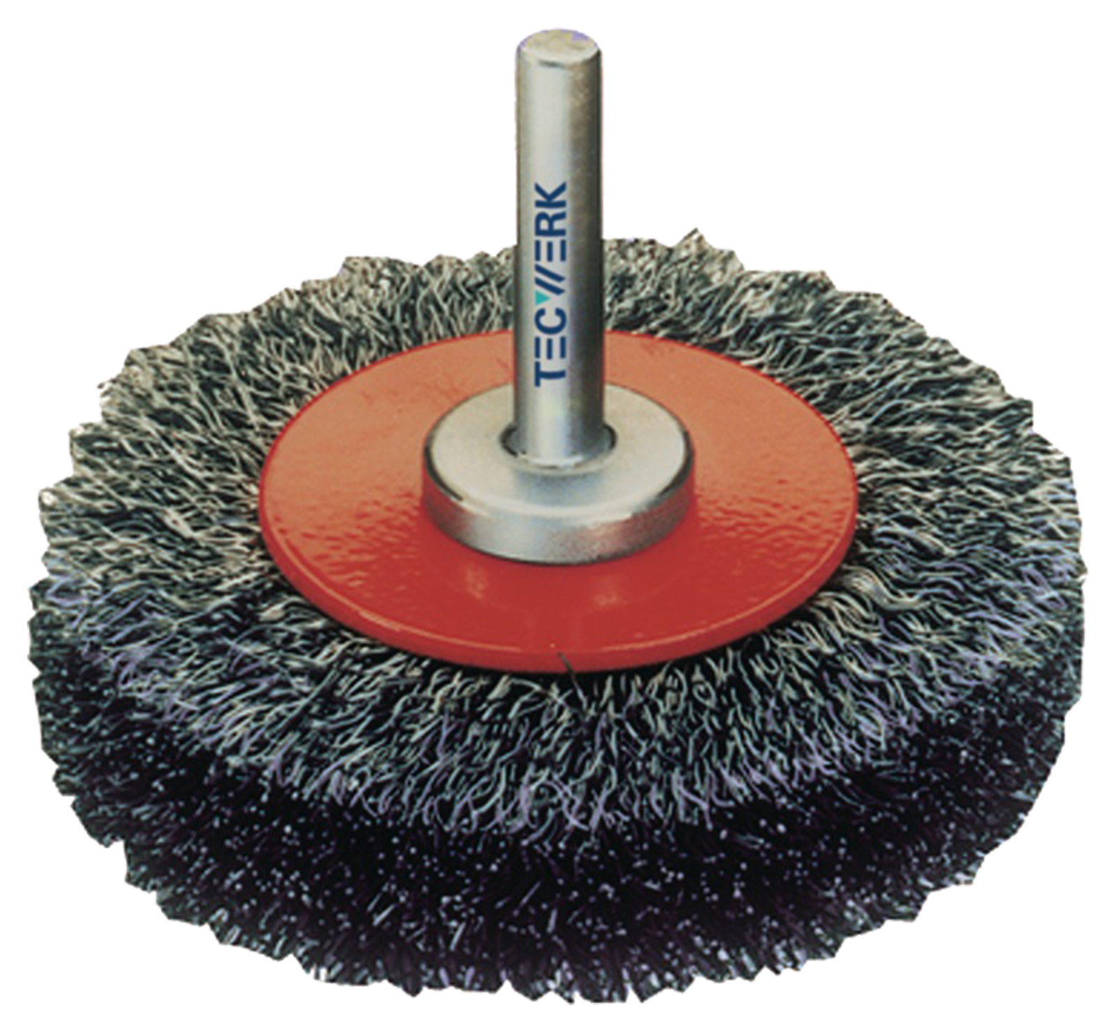 Gewellter Draht, mit kleinem Durchmesser für den Einsatz an schwer zugänglichen Stellen, Innenflächen und Nuten. Ideal zum Säubern und Entrosten, Schaft Ø 6mm.