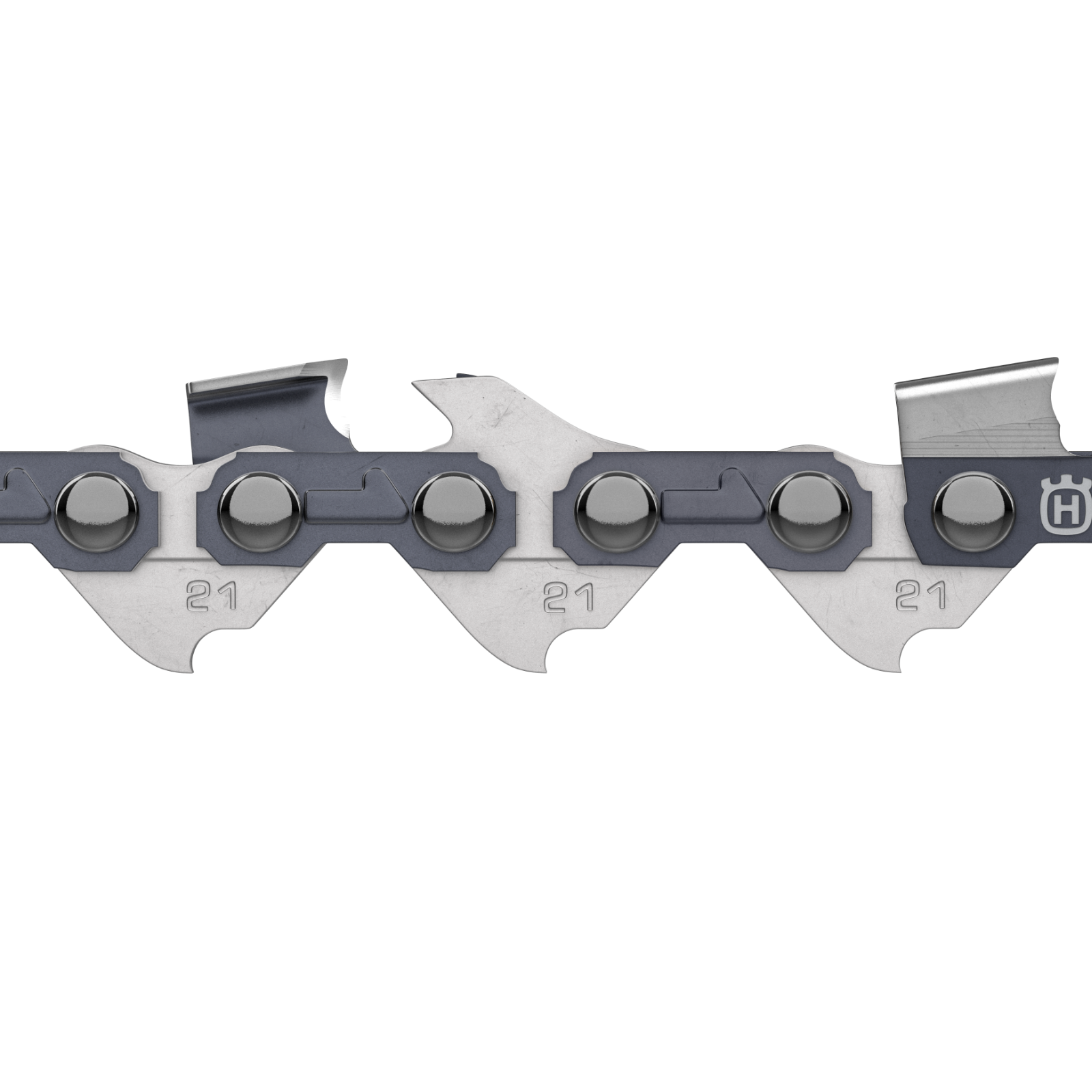Husqvarna Halbmeißel Sägekette, die speziell für Akku-Kettensägen entwickelt wurde, um die Schneidgeschwindigkeit und den Wirkungsgrad zu erhöhen.