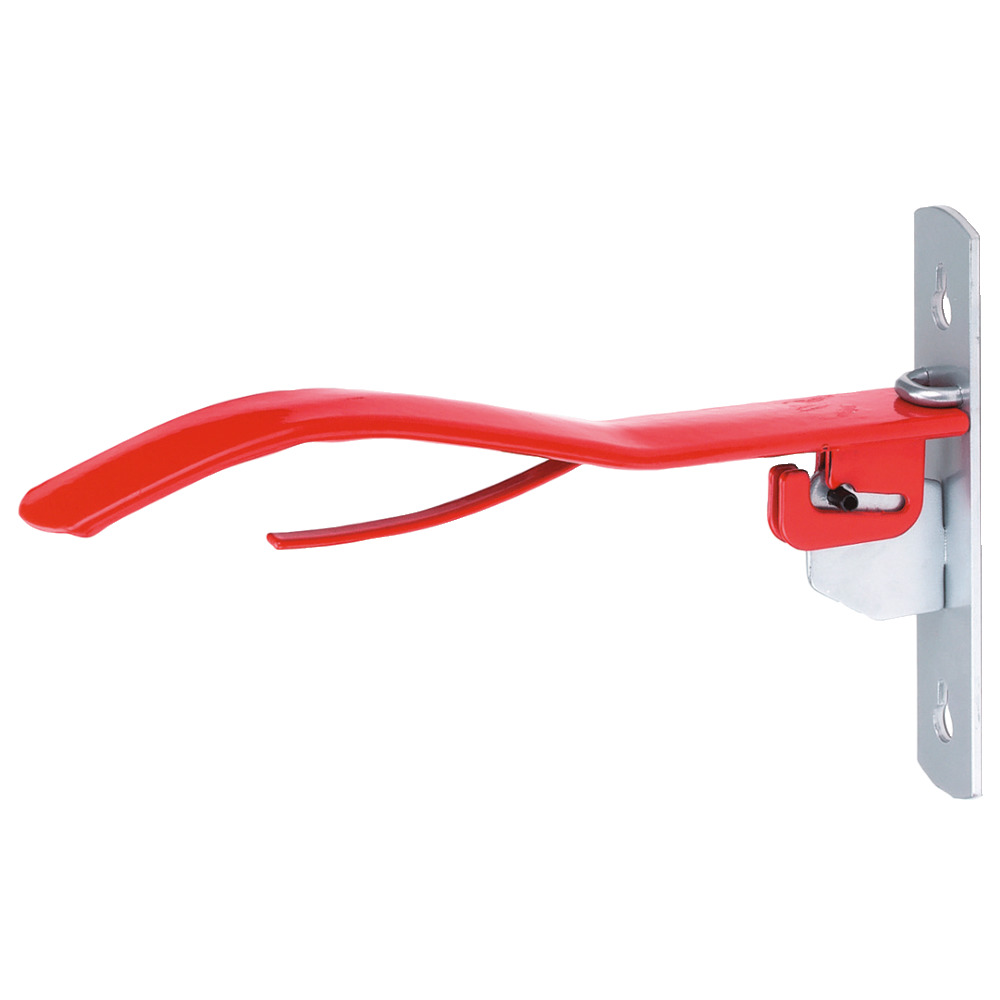 Dieser rot lackierte Sattelhalter kann überall montiert werden, wo man ihn braucht. Er ist klappbar, daher platzsparend, wenn man ihn gerade nicht benutzt.Länge: 38 cm