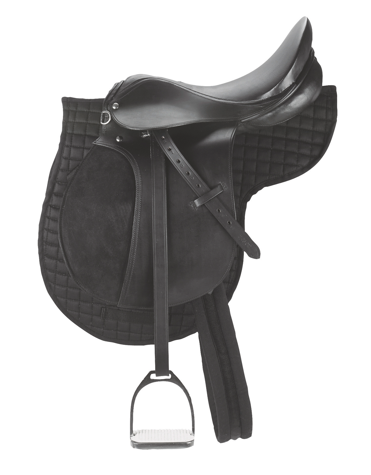 Bequeme Größe (17,5″), inkl. Satteldecke,Sattelgurt (Länge 125 cm), Steigbügelriemen und Steigbügel.Farbe: schwarz.Kammerweite 34,5 cmMaterial: BüffellederFüllung: Schaumstoff