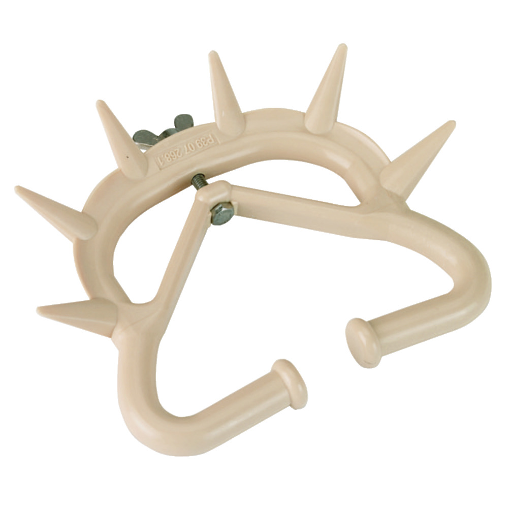 Elastisches Material sowie eine Schraube gewährleisten eine einfache Verstellmöglichkeit und damit verbunden eine einwandfreie Befestigung im Nasenknorpel der Tiere. Ein Verlieren des Saugschutzes ist so gut wie ausgeschlossen.