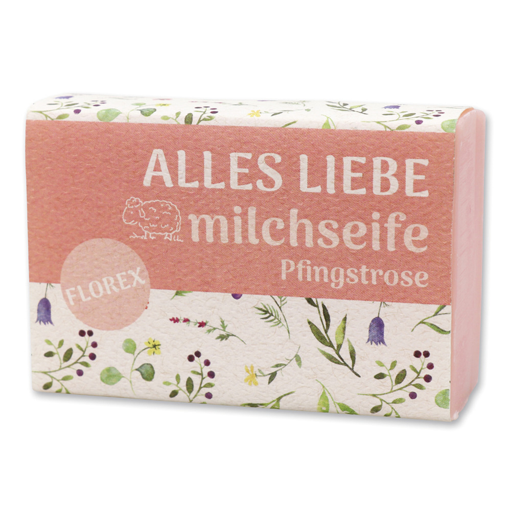 Florex Schafmilchseife eckig 150 g Pfingstrose mit Schleife “Alles Liebe” ist ein zauberhaftes Beauty-Produkt, das nicht nur Deine Haut verwöhnt, sondern auch eine liebevolle Botschaft überbringt. Mit einem Hauch von Romantik und der natürlichen Kraft der Schafmilch bietet diese Seife eine luxuriöse Pflege für Körper und Seele. Der zarte Duft der Pfingstrose in Kombination mit der cremigen Schafmilchseife schafft ein sinnliches Erlebnis unter der Dusche oder beim Händewaschen. Die Schafmilchseife reinigt sanft, spendet Feuchtigkeit und hinterlässt ein angenehmes Hautgefühl. Sie ist frei von Parabenen, Silikonen oder Erdöl und daher auch für empfindliche Haut geeignet.