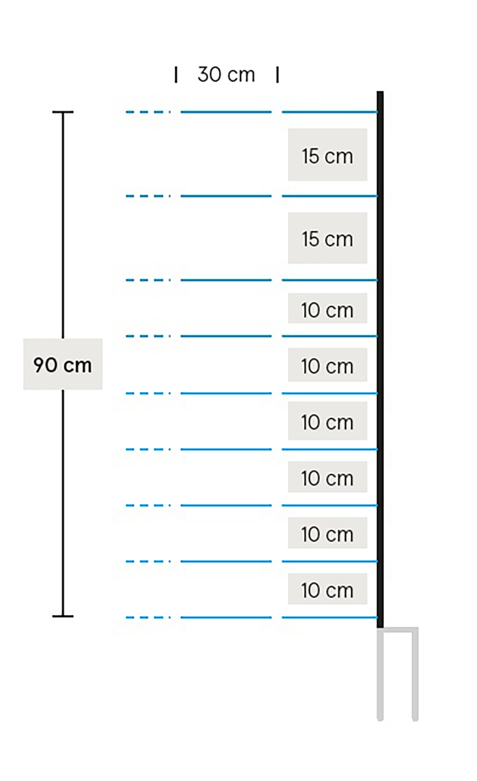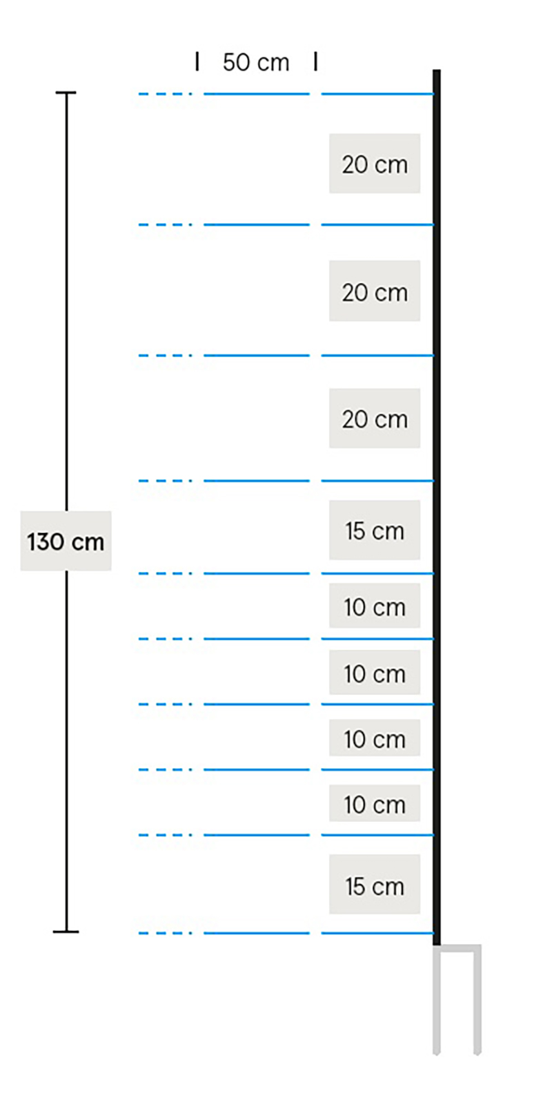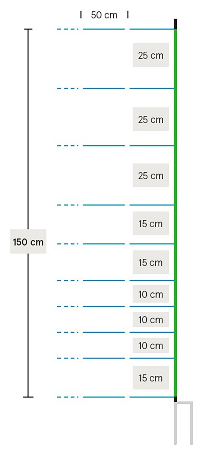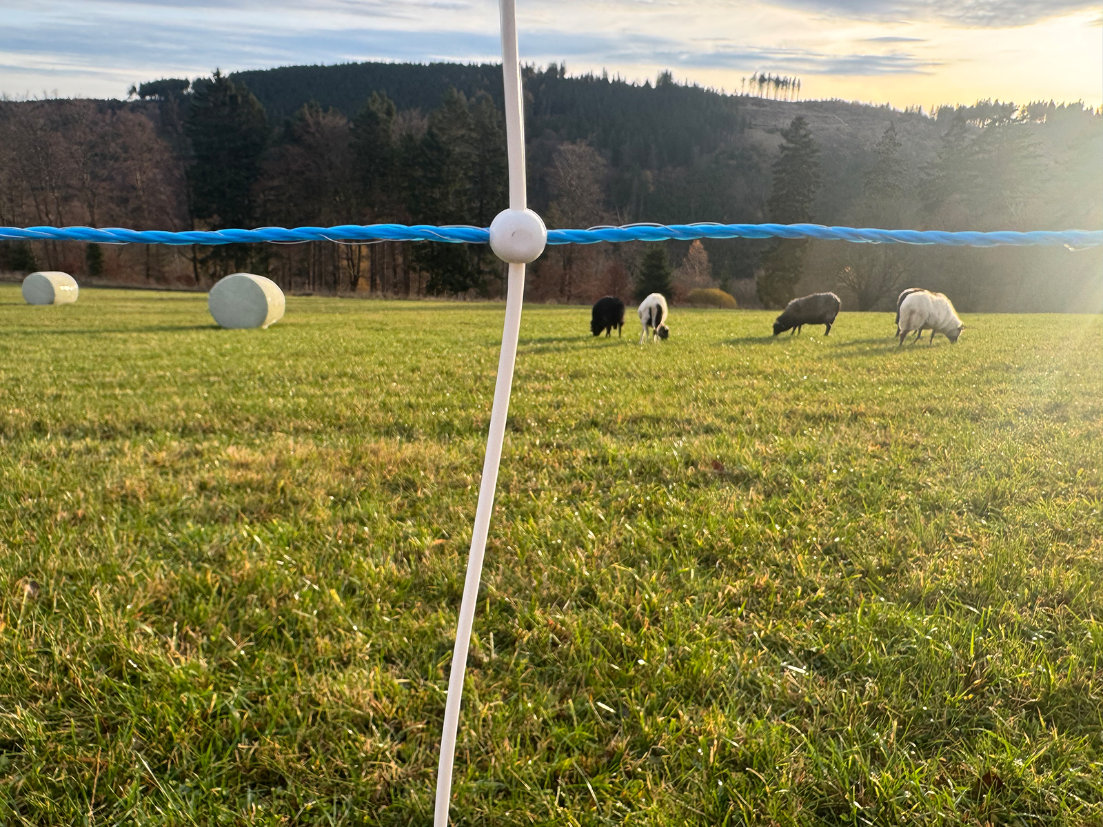 Elektrifizierbares Universal-Schafnetz mit Doppelspitze. Mit vertikalen Kunststoffstreben für einen besseren Stand in unebenem und steilem Gelände. Ideal als Wolfsabwehrnetz. Länge: 50 m. 14/16 Pfähle. Widerstand: 0,1 Ohm/m. 3 Jahre Garantie gegen UV-Schäden! Farbe Netz: Blau/Weiß, Farbe Pfähle: Weiß. Einsatzbereich: Schafe, Lämmer und Ziegen.