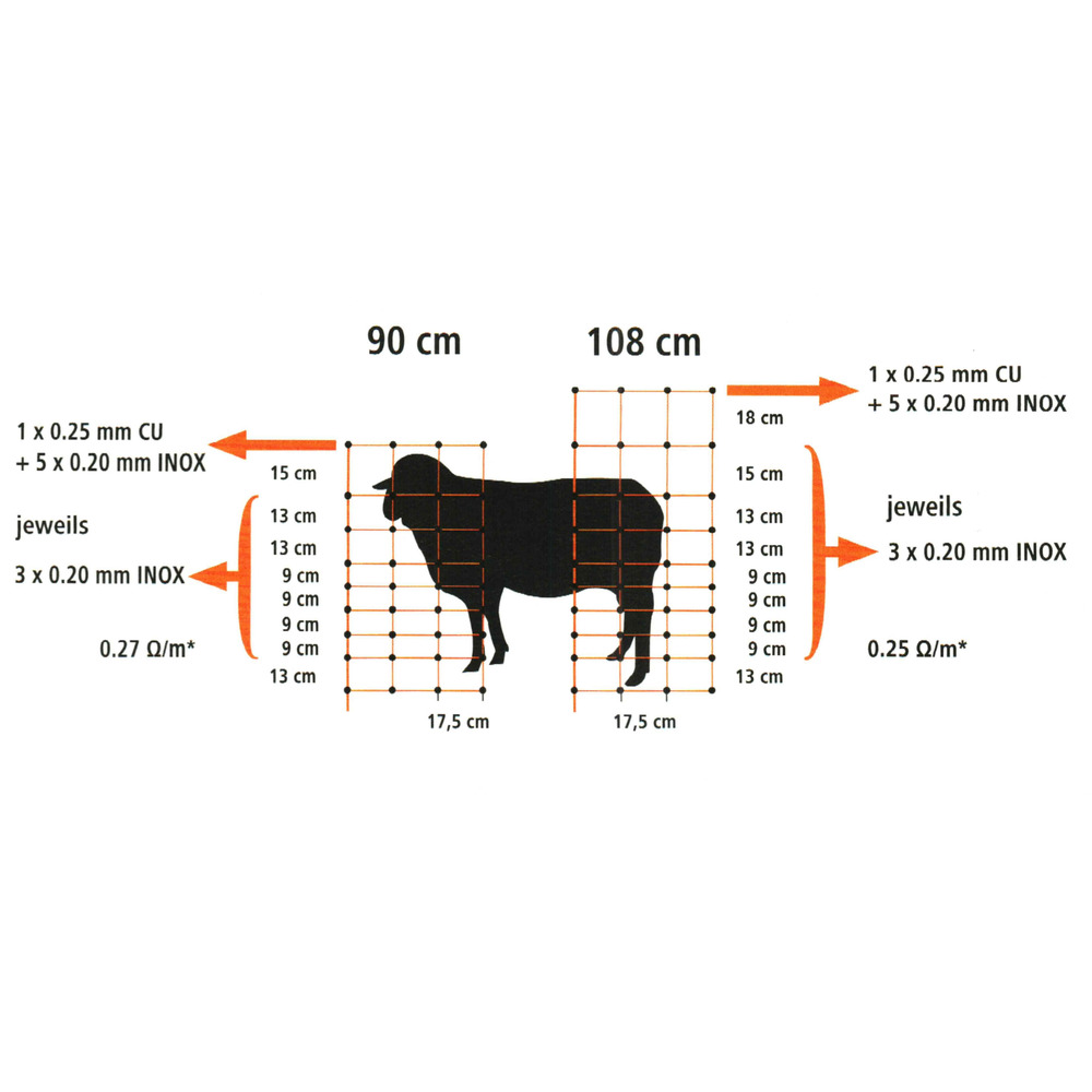 Besonders geeignet für die Anwendung mehrerer Netze hintereinander. Optimale Stromführung bis zum entferntesten Schafnetz durch verzinnten Kupferleiter in der obersten Litze! 20-fach höhere Leitfähigkeit zu Standard-Netzen! Beste Qualität.