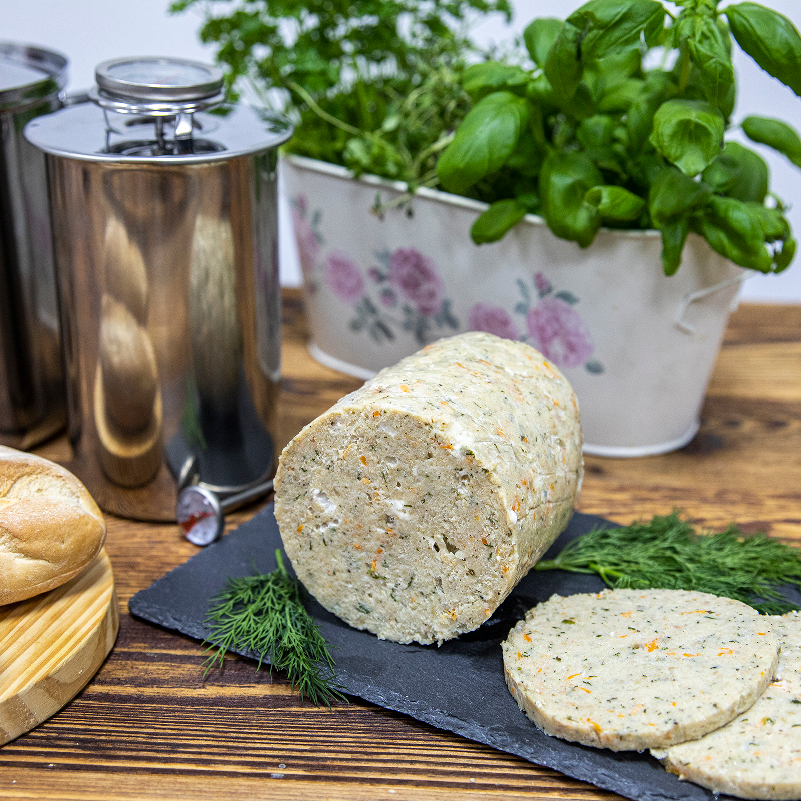 Moderne und gesunde Küche - Sie entscheiden, aus welchen natürlichen Zutaten Sie Ihren köstlichen Wurstwaren selber machen - gepökelt oder nicht gepökelt. Der Schinkenkocher ist ideal auch für die Zubereitung vegetarischer Gerichte.Innovative Konstruktion - dank dem speziellen Design ruht der Schinkenkocher auf einem Flansch und berührt den Topfboden nicht, sodass das Wasser den Schinkenkocher umhüllt und einen sog. Wassermantel bildet, der bewirkt, dass das zubereitete Essen saftig ist und dazu beiträgt, dass es gleichmäßig abgebrüht wird.Er wurde aus hochwertigem Edelstahl gefertigt.Der perfekt sitzende Flansch verhindert, dass das Wasser verdunstet, Sie müssen die Wassermenge nicht kontrollieren, nachfüllen oder Verbrühungen befürchten.Universell - Sie können im Schinkenkocher auf einmal maximal 1,5 kg Einlage zubereiten, z.B. klassische Schinken, Rouladen, Frühstücksfleisch oder vegane Pasteten.Der Hersteller präsentiert einen Schinkenkocher mit Topf zum Brühen im Wassermantel – ein ideales Produkt für die Zubereitung von Fleisch- und vegetarischen Gerichten ohne einen zusätzlichen Topf.Das Set besteht aus 6 Teilen:4-Liter-Topf für alle Herdarten geeignet, Flansch, 1,5-kg-Schinkenkocher, Füllbeutel (10 Stück), zwei Thermometer: Eins zur Kontrolle der Fleischtemperatur im Schinkenkocher und das Zweite zur Kontrolle der Wassertemperatur.Ist spülmaschinenfest.Abmessungen: Schinkenkocher:· Ø 10 cm· Höhe 17 cm Topf:· Ø 17,5 cm· Höhe 17,7 cm·Gesamthöhe des Sets – Topf mit Schinkenkocher - 20 cmDas Produkt ist beim europäischen Patentamt registriert worden.