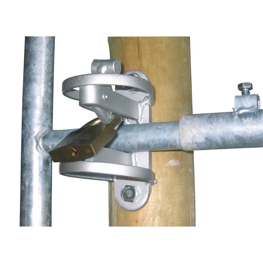 Torverriegelung, ermöglicht das Verschließen Ihres Weidetors mittels Vorhängeschloss (nicht im Lieferumfang enthalten)! Ohne Schrauben!Länge gesamt ca. 15 cm, Lochabstand ca. 12 cm, für Rohre mit Druchmesser von ca. 3,5 cm geeignet.