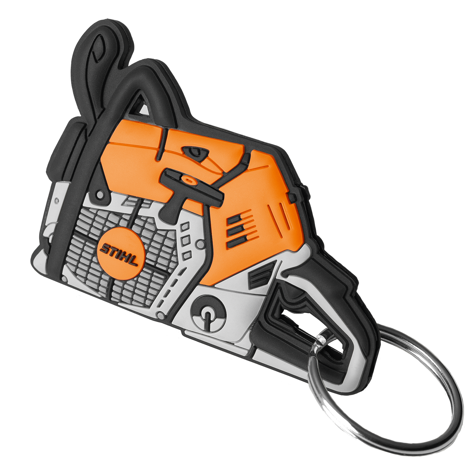 Schicker Stihl Überzug für Ihren Schlüssel! Einfach über Ihren Schlüssel stecken, elastischer Kunststoff im Design einer Motorsäge, griffgünstig und durch die knallige Farbe leicht zu finden