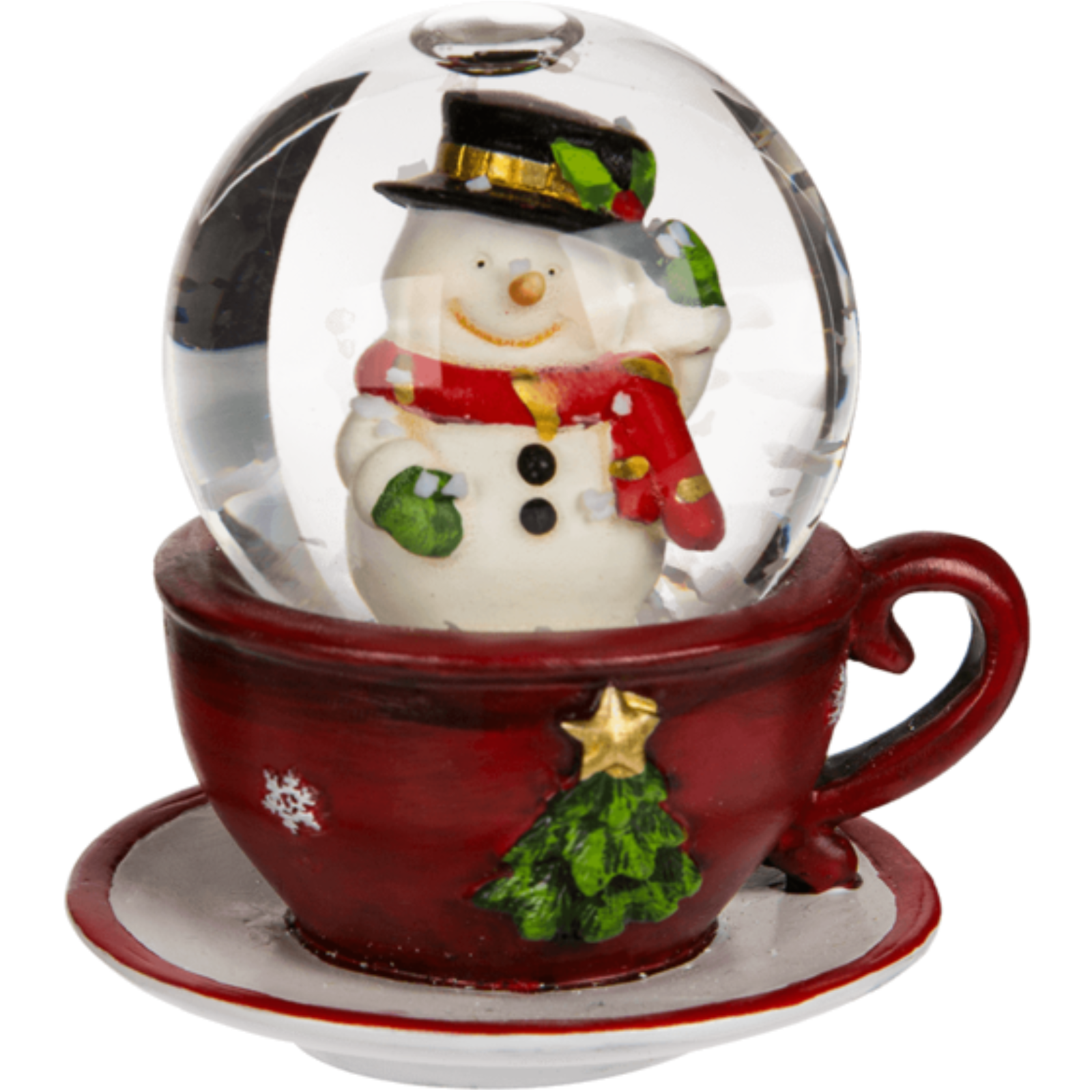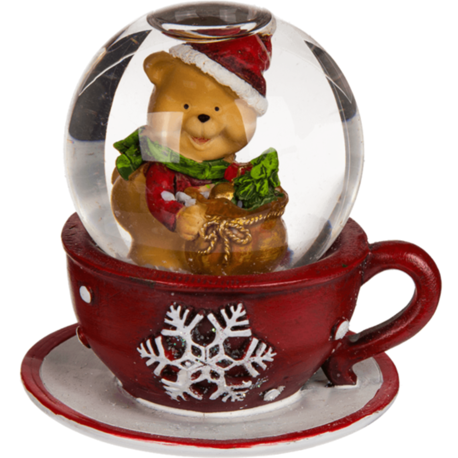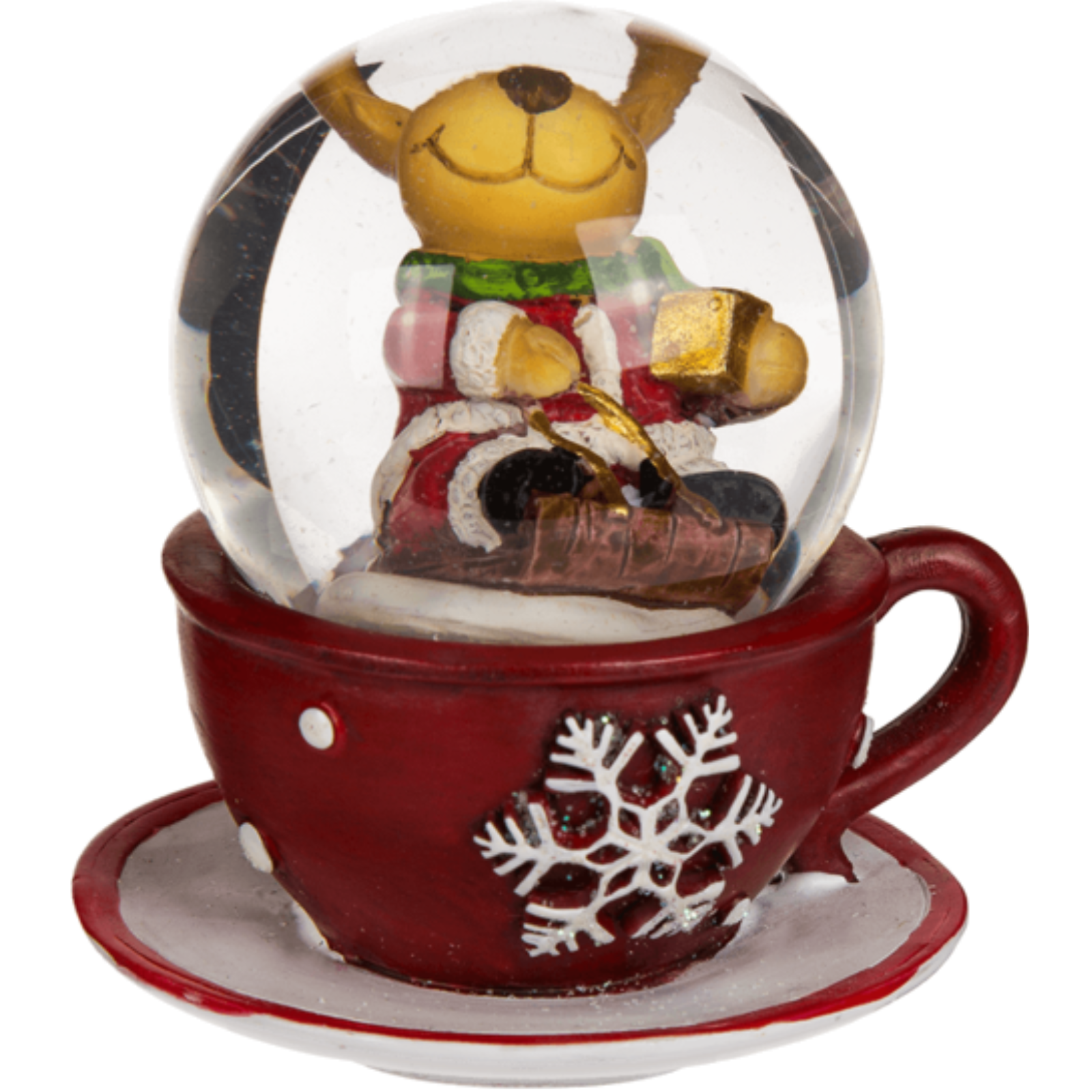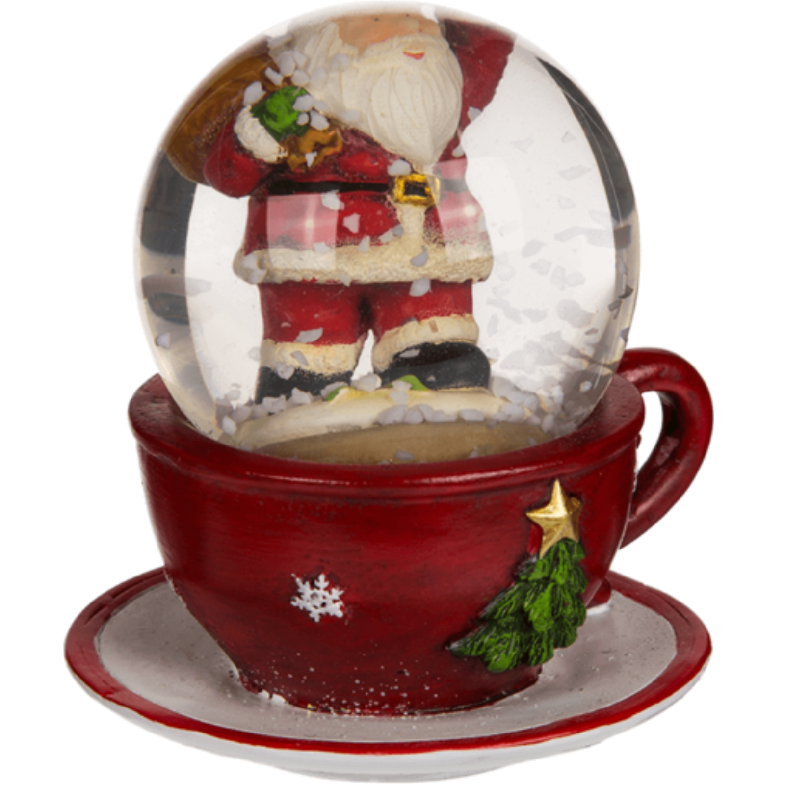 Weihnachtliche Schneekugel – Weihnachtsfigur in roter Kaffeetasse