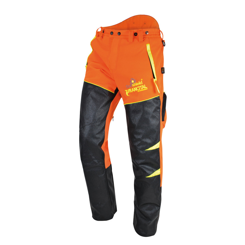 Schnittschutzhose aus hoch komfortablem Stretch Material,Verstärkung mitSofishield®-Technologie: Abriebfestigkeit = 4x resistenter als Cordura®, 5 leichte Schnittschutzlagen in SOFLY®-Technologie.Die integrierten Gamaschen bieten Schutz gegen Zecken sowie anderes Ungeziefer.Lüftungsschlitze mit Reißverschluss für ein optimales Körperklima.2 Hosentaschen mit Reißverschluss, 1 Gesäßtasche und 1 Handy-/Medikamententasche bieten genügend Platz.EN 381-5, KWF ProfiForsthose Francital Kraken Schutztype A, Klasse 1.Größen S-XXL.