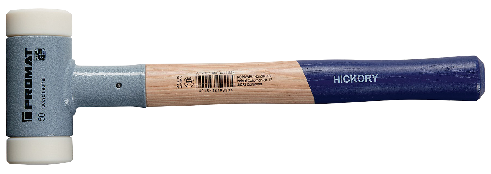 Produktinformationen "Schonhammer Gesamtlänge 370 mm Kopf-D. 50 mm Hickory rückschlagfrei hart Nylon weiß"