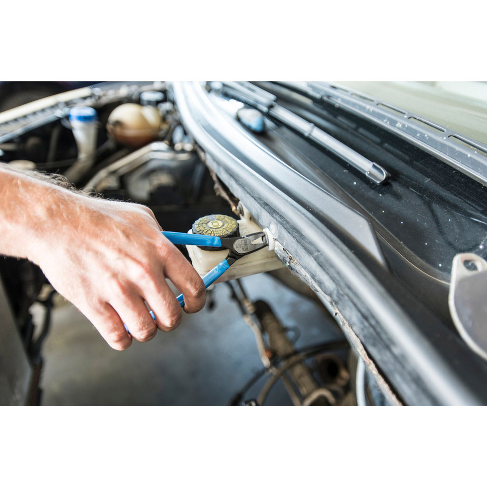 Weltneuheit! Praktische Universalzange für das Festhalten und Drehen von runden Materialien wie z.B. Schrauben, Nägel usw.Die speziellen Längs-und Querverrippung sorgt für sicheren Halt und eine gute Kraftübertragung.
